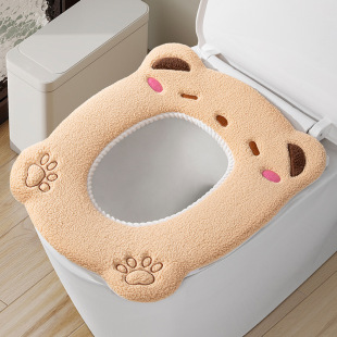 坐便套刺绣马桶套坐便垫 坐垫加厚冬季 造型款 熊带提手马桶垫拉链式