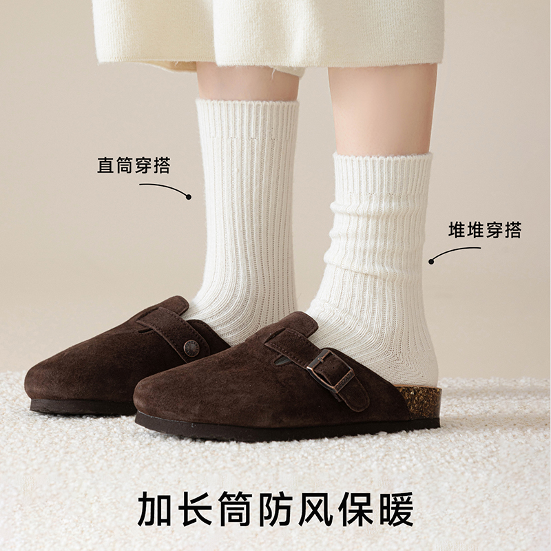 羊毛袜子女2025新款 加厚保暖堆堆袜秋冬配雪地靴月子无骨中筒长袜
