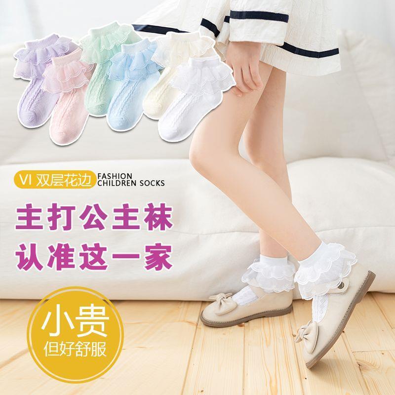 儿童花边袜春夏薄款 中筒双层蕾丝纯棉宝宝袜子女童公主白色舞蹈袜