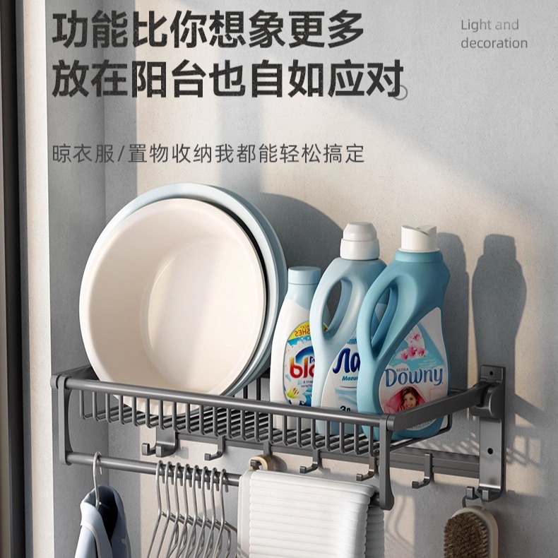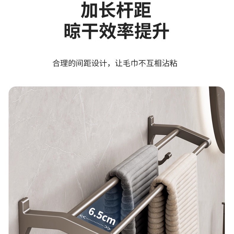 枪灰折叠网篮浴巾架太空铝浴室置物架壁挂厕所免打孔卫生间毛巾架