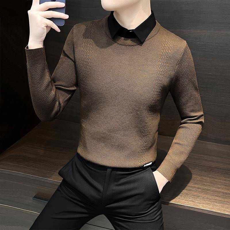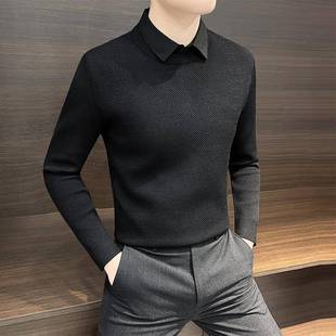 上衣衬衫 男士 2025新款 秋冬感秋装 领内搭打底毛1014r 假两件针织衫