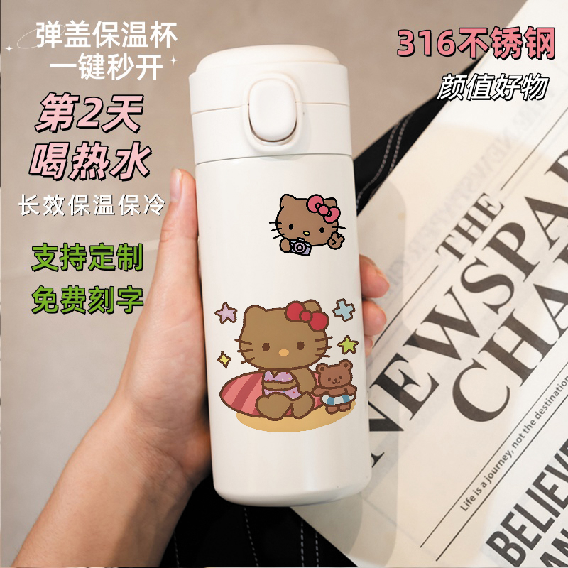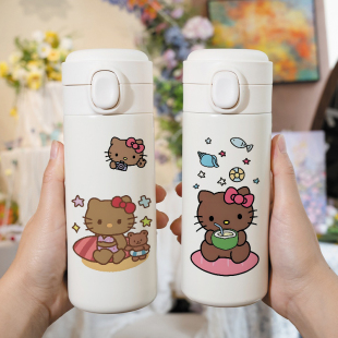 黑皮kitty保温杯女可爱水杯学生凯蒂猫杯子送闺蜜女朋友生日礼物