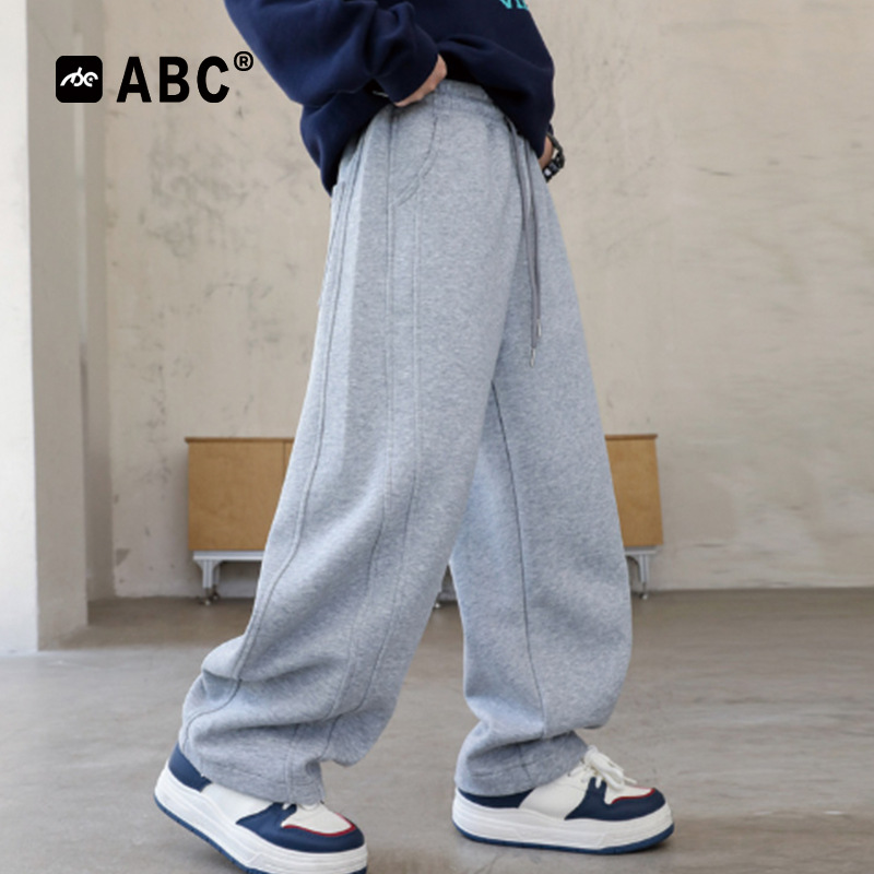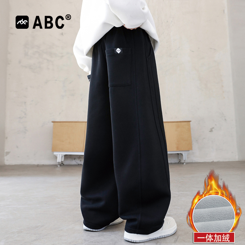男孩加厚卫裤 中大童加绒百搭弯刀裤 2025新款 ABC男童春秋冬运动裤