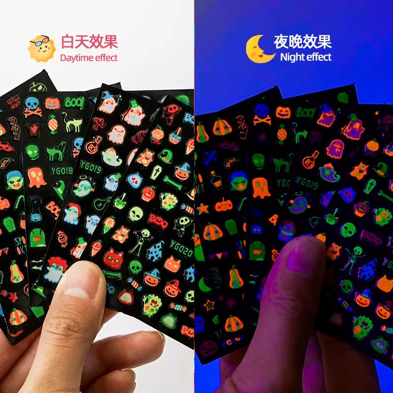 万圣节儿童纹身贴卡通南瓜女巫可爱女孩装 饰水印贴纸蝙蝠化妆贴纸活动表演道具圣诞节 扮腮红水印贴妆容脸贴装