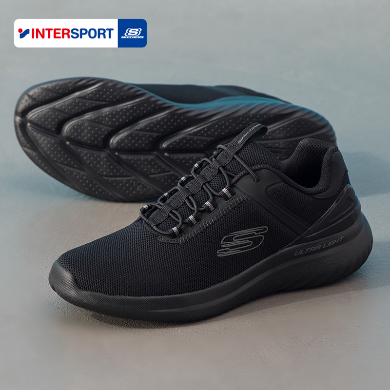 软底轻便透气休闲运动鞋 斯凯奇2025秋季 子黑色网面跑步鞋 男鞋 新款