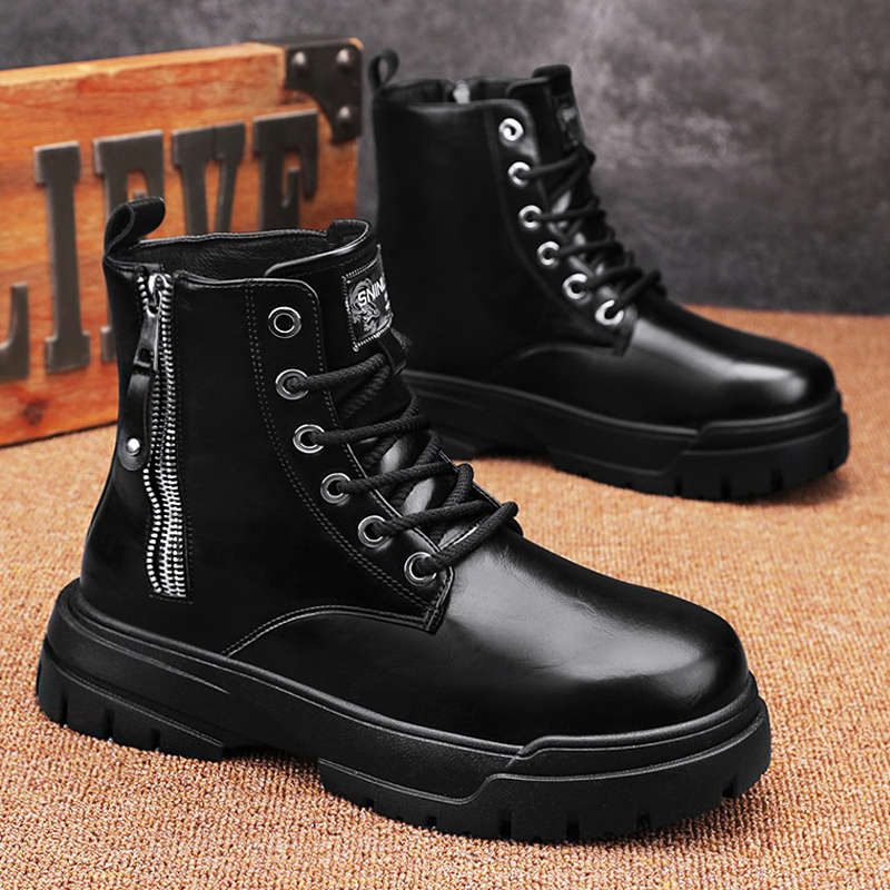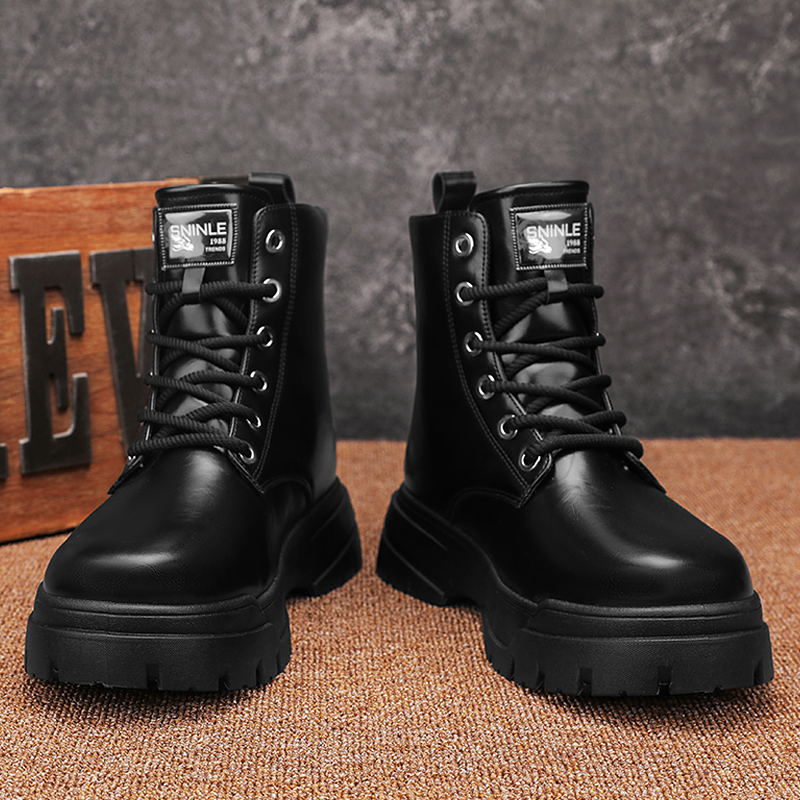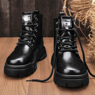 冬季 中帮潮鞋 高帮厚底机车工装 男士 英伦皮靴 靴黑色皮鞋 马丁靴男款