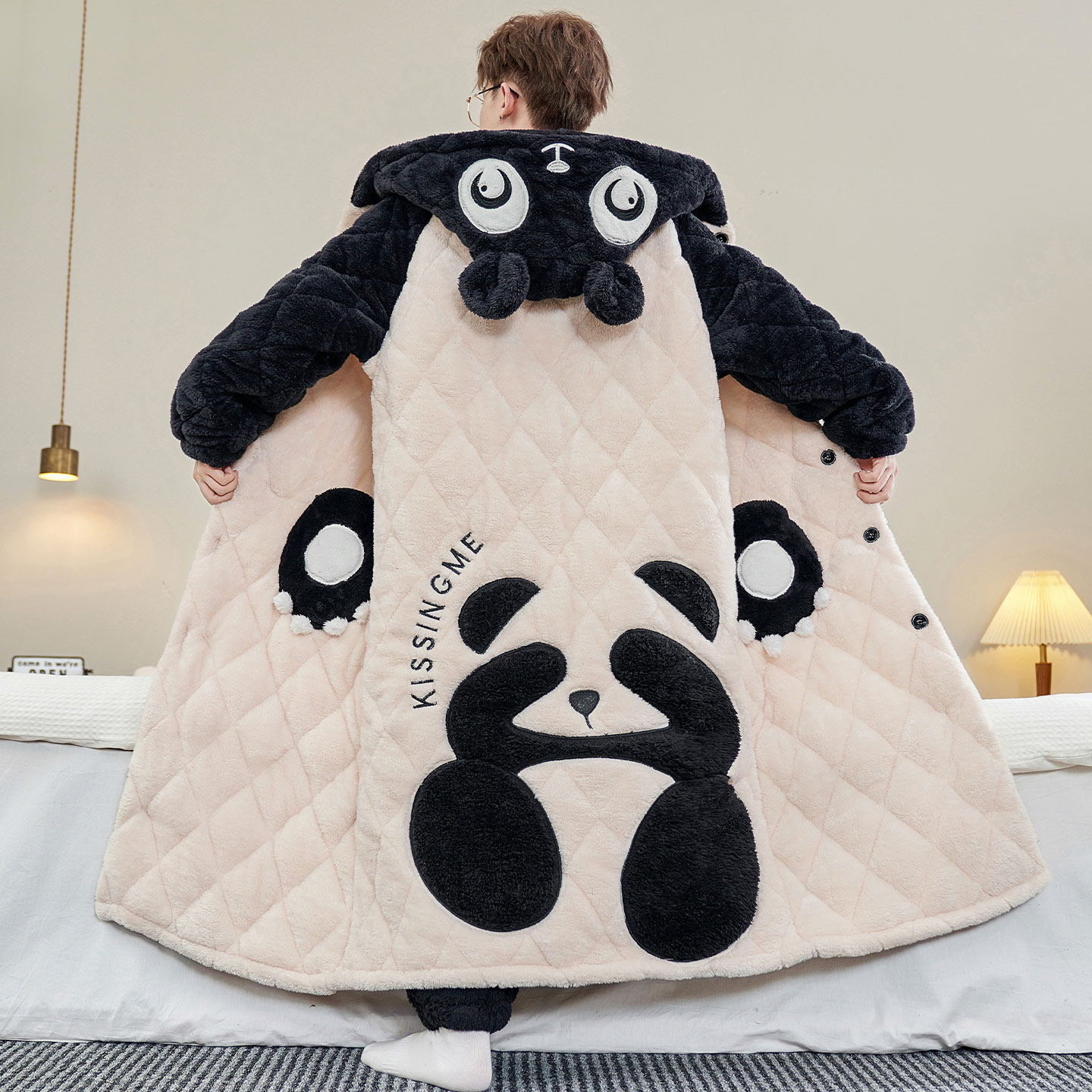 秋冬季 睡袍加绒加厚冬天三层夹棉袄浴袍睡衣龙猫家居服 珊瑚绒男款