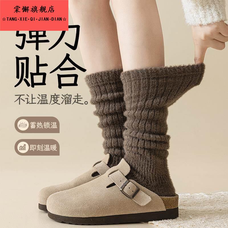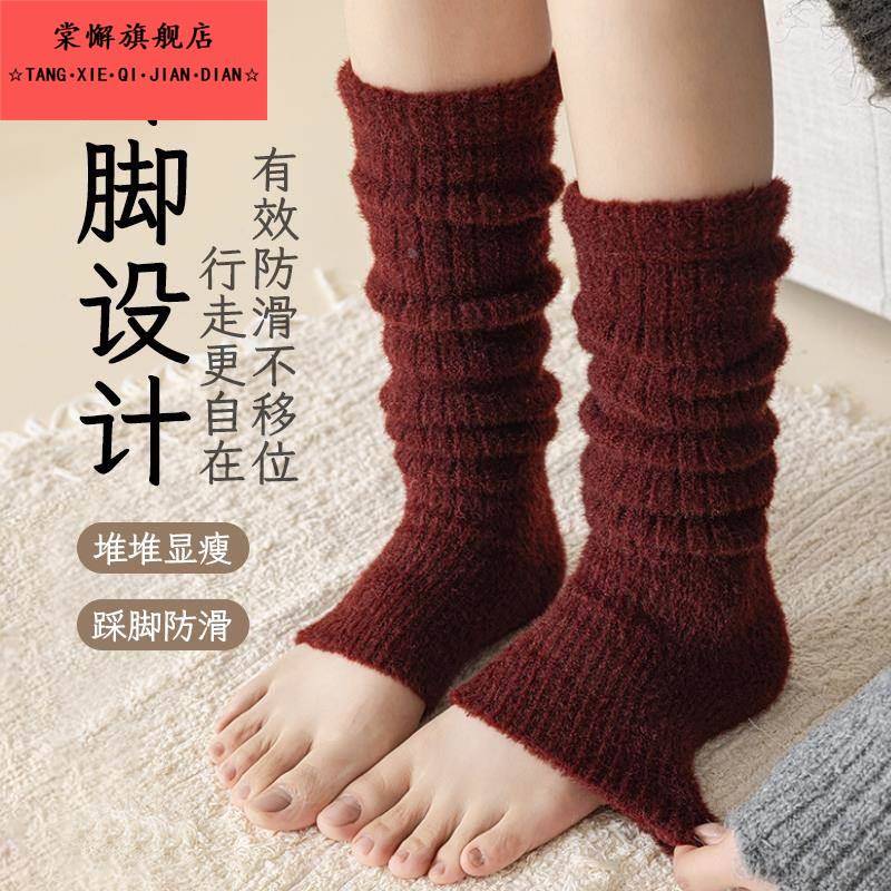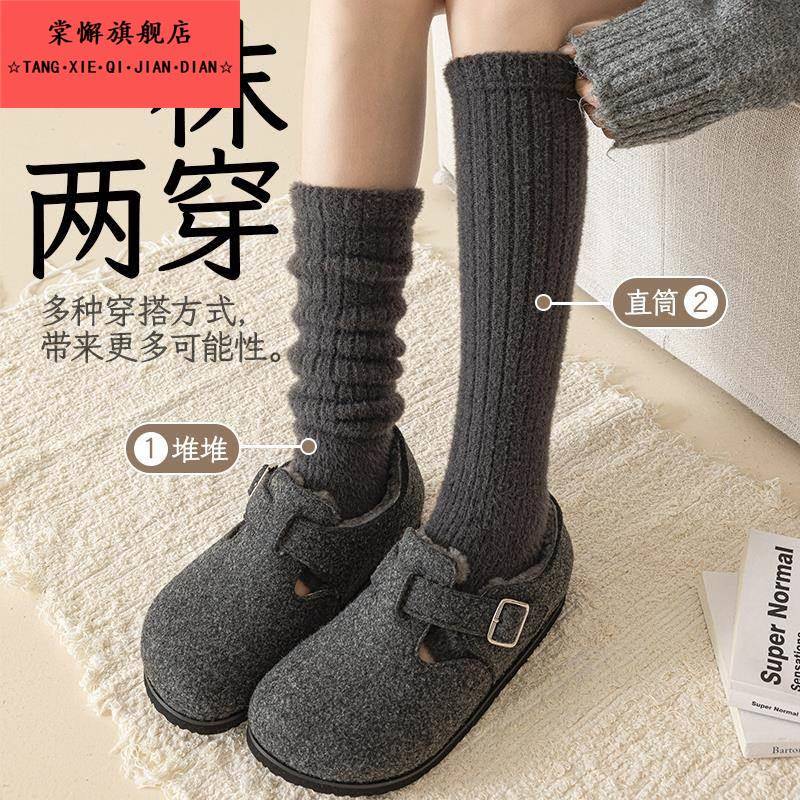 羊毛袜套女秋冬加厚保暖踩脚中筒防滑腿套2小腿长筒堆堆袜子女
