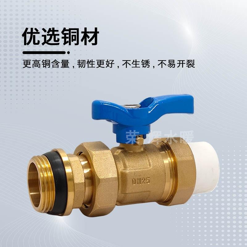 加厚全铜PPR外丝双活接球阀地暖暖通分水器专用管道铜阀门46分1寸