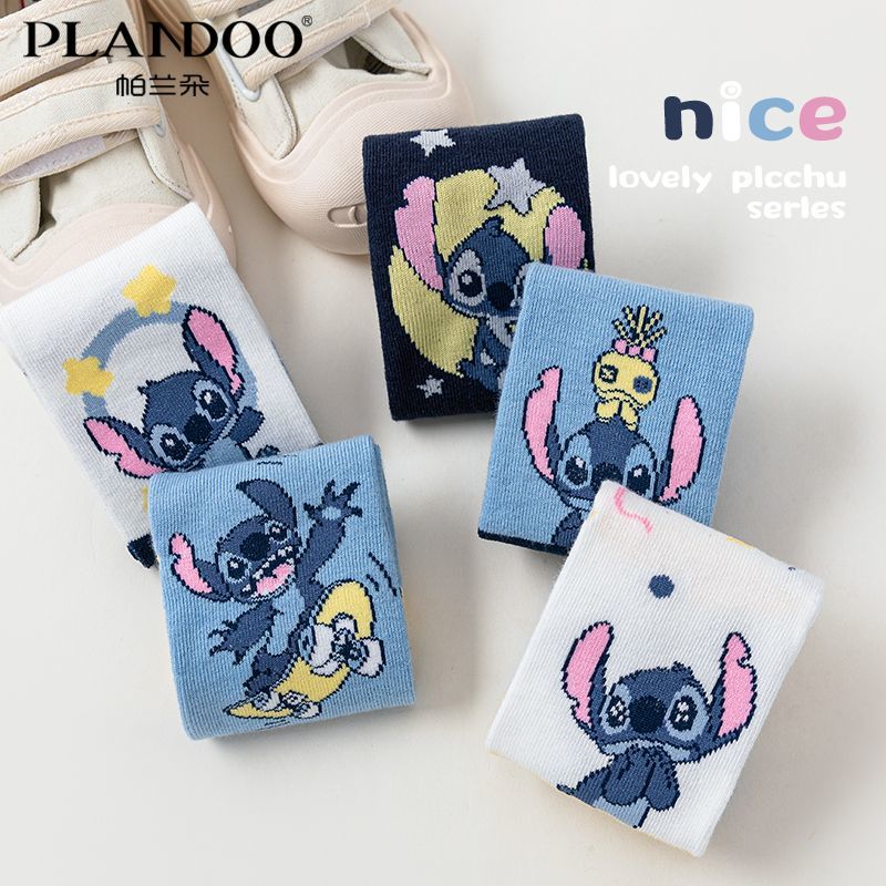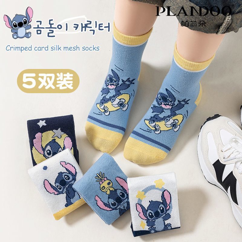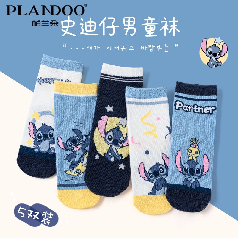 帕兰朵韩版 可爱卡通史迪仔蓝色系中筒童袜子春秋棉质舒适亲肤男宝