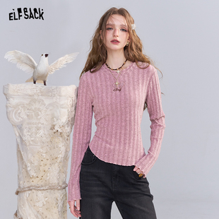 韩系薄款 女2025早秋氛围感穿搭新款 上衣 口袋粉色刺绣针织衫 妖精
