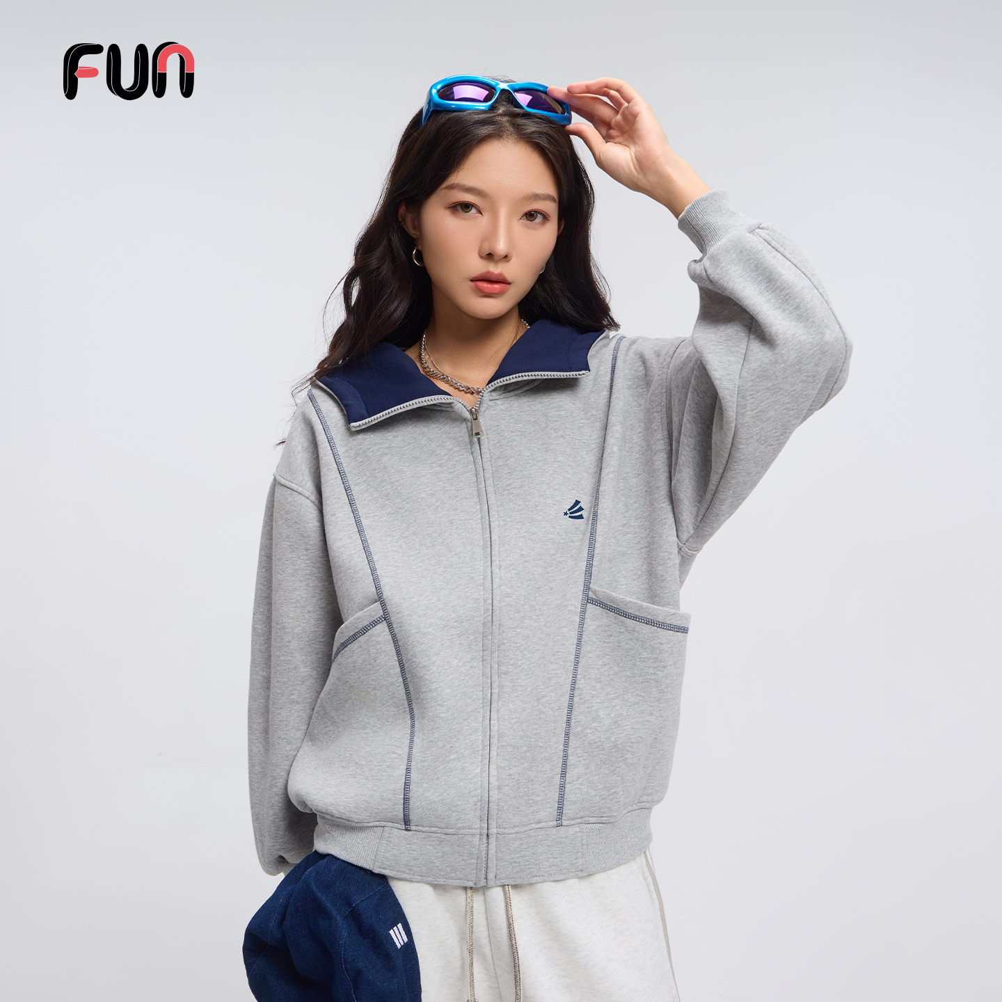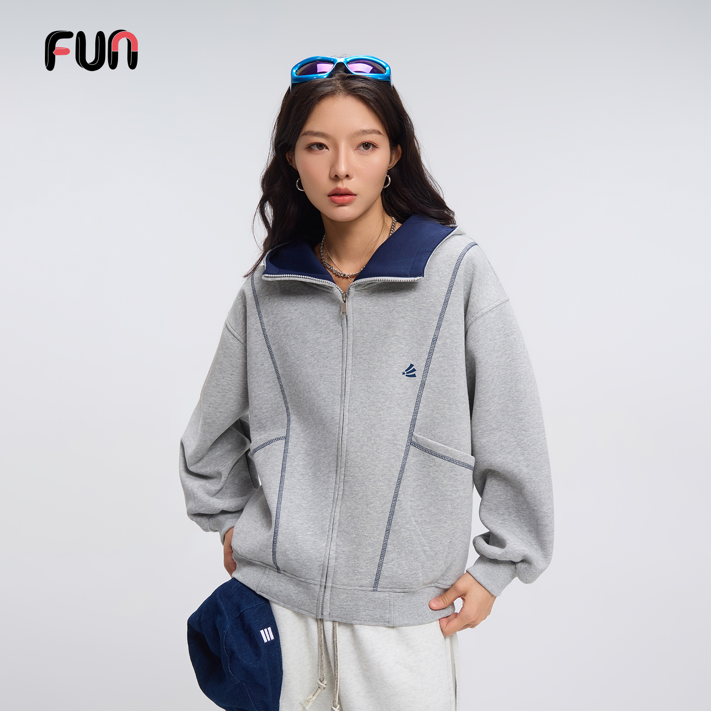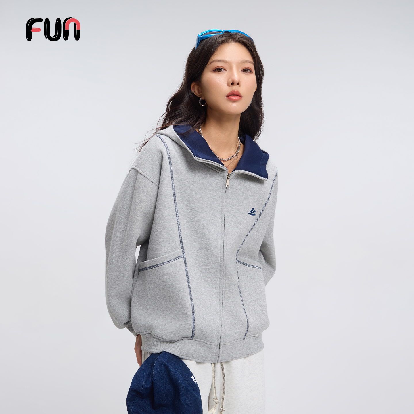 Fun潮牌连帽卫衣男女款 外套 秋冬简约撞色宽松休闲百搭情侣开衫