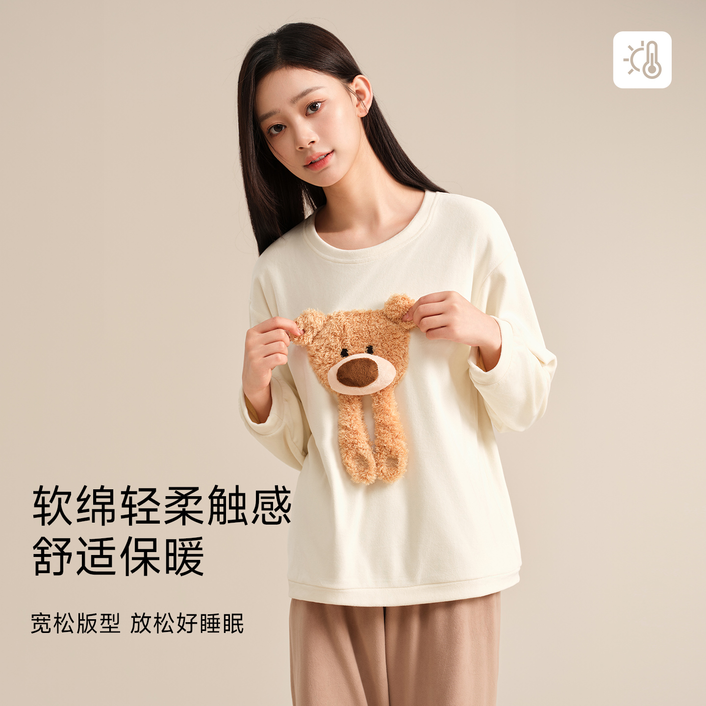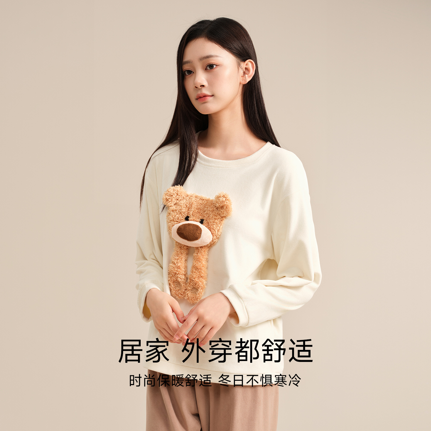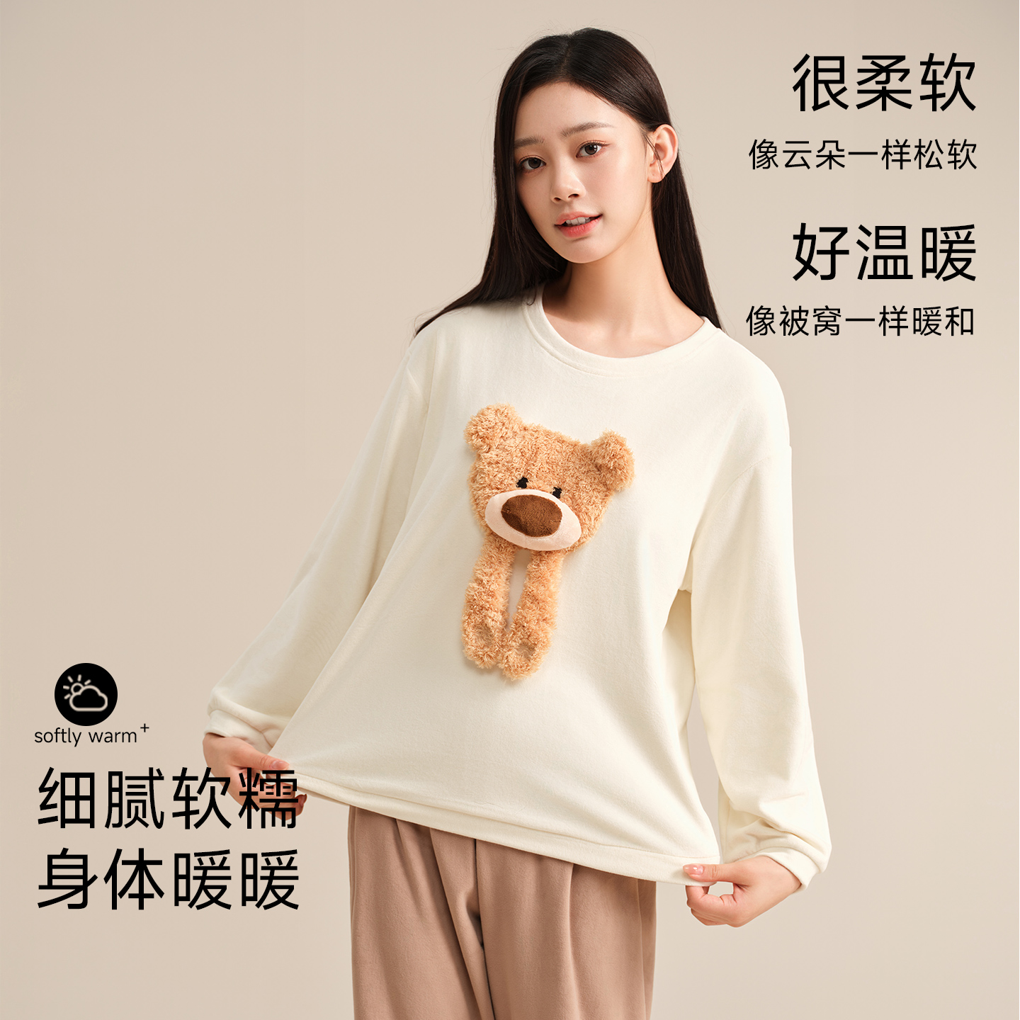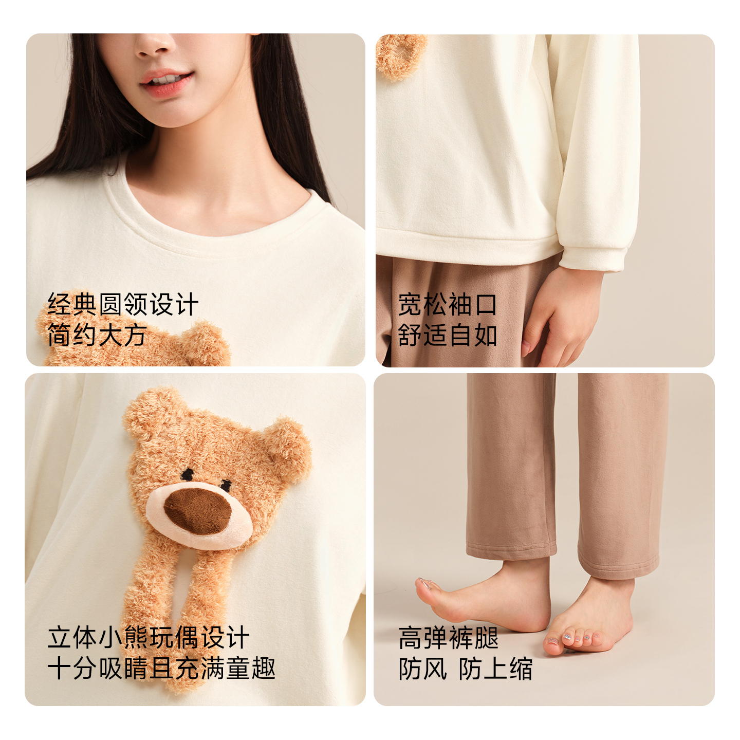 海岛绒小熊可爱加厚保暖家居服套装 2025新款 美优睡衣女秋冬季 美季