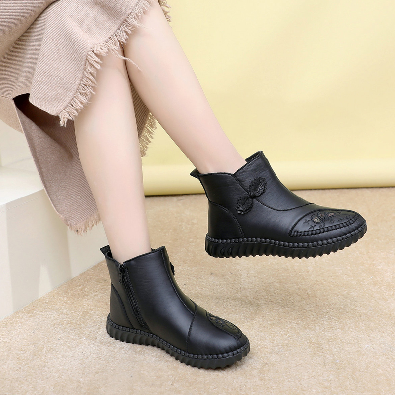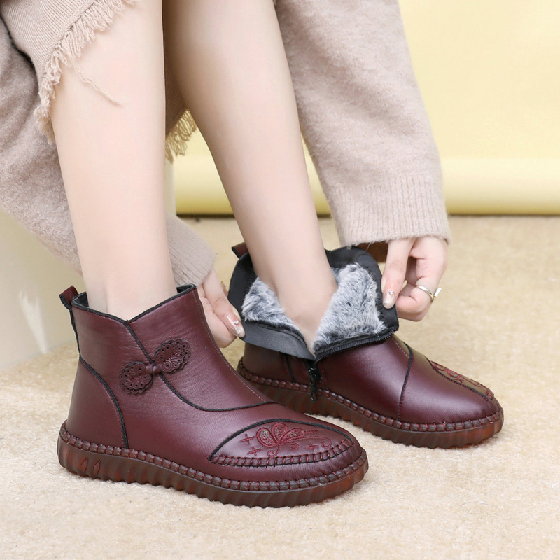 加绒加厚保暖中老年妈妈防滑牛筋底奶奶棉靴 女棉鞋 冬季 老北京布鞋