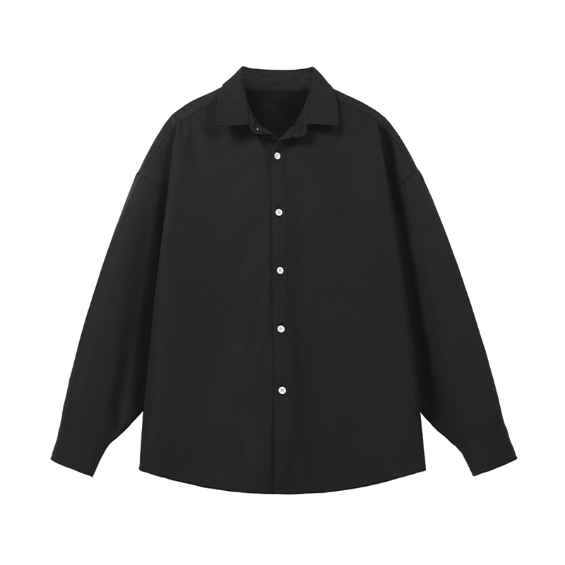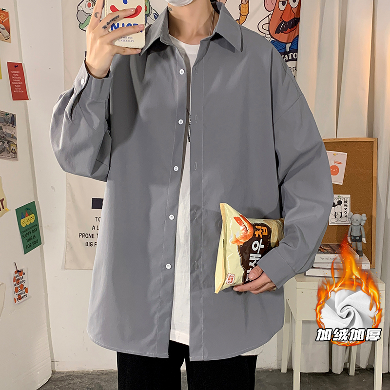 春秋季 男长袖 港风加绒加厚宽松内搭衬衣外套潮 重磅纯色衬衫 基础款