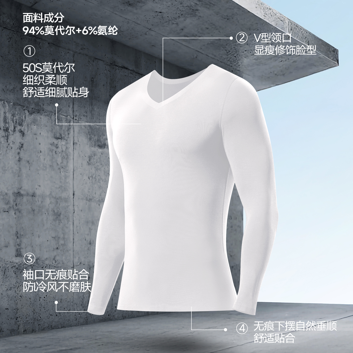 上衣男士 内穿长袖 线衣 保暖内衣紧身无痕打底衫 单件秋衣莫代尔薄款