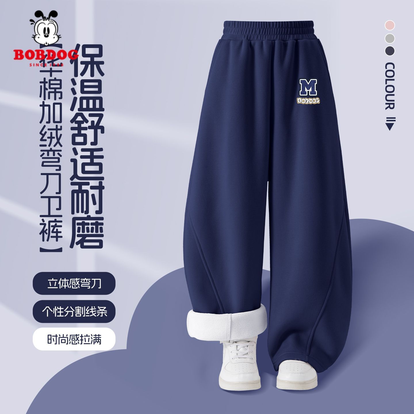 保暖休闲裤 巴布豆男童加绒弯刀裤 儿童加厚卫裤 2025新款 奥粒绒冬季