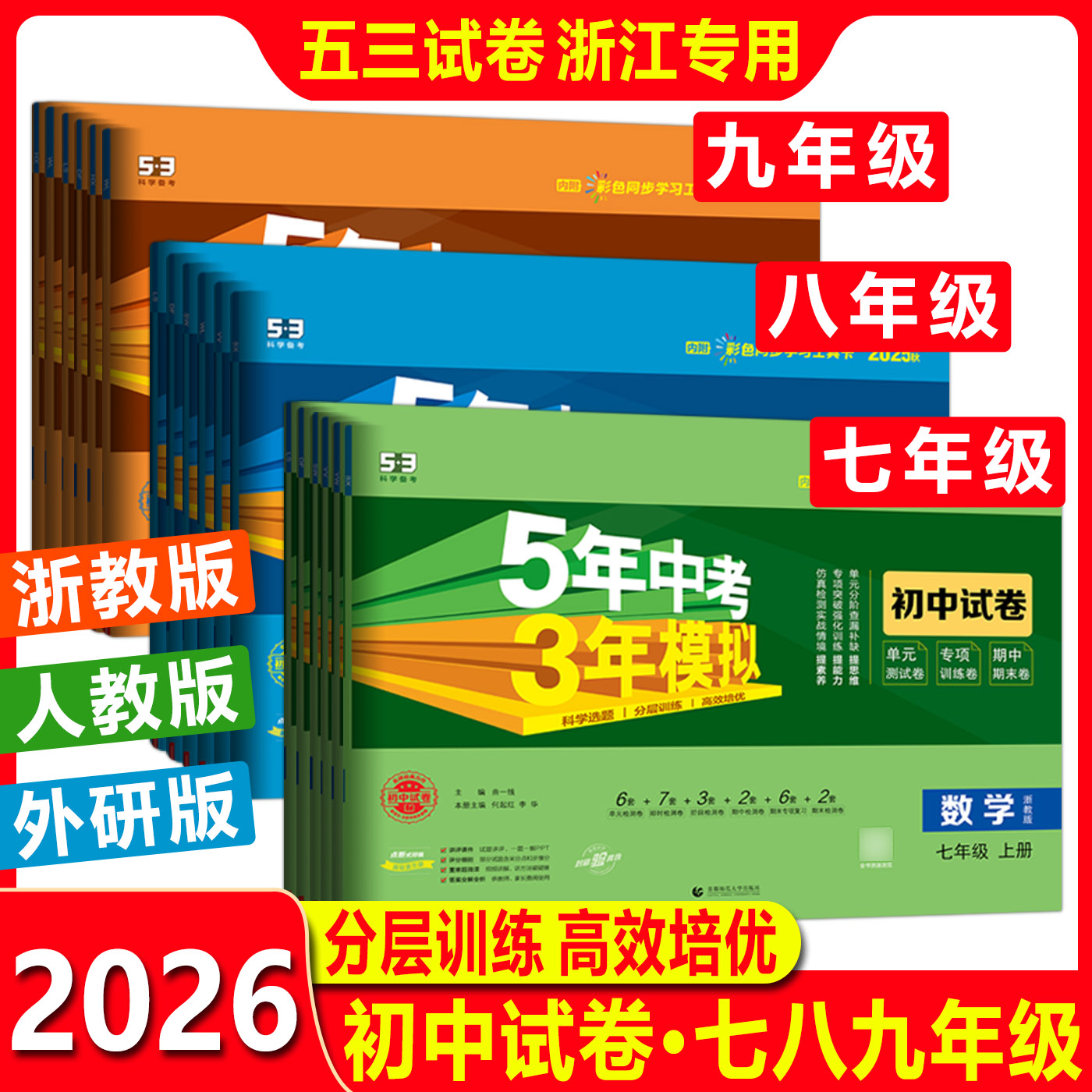 五三初中试卷浙教版 期中期末检测卷 2026浙江五年中考三年模拟同步试卷七年级八年级九年级上下册数学科学语文英语道法历史地理单元