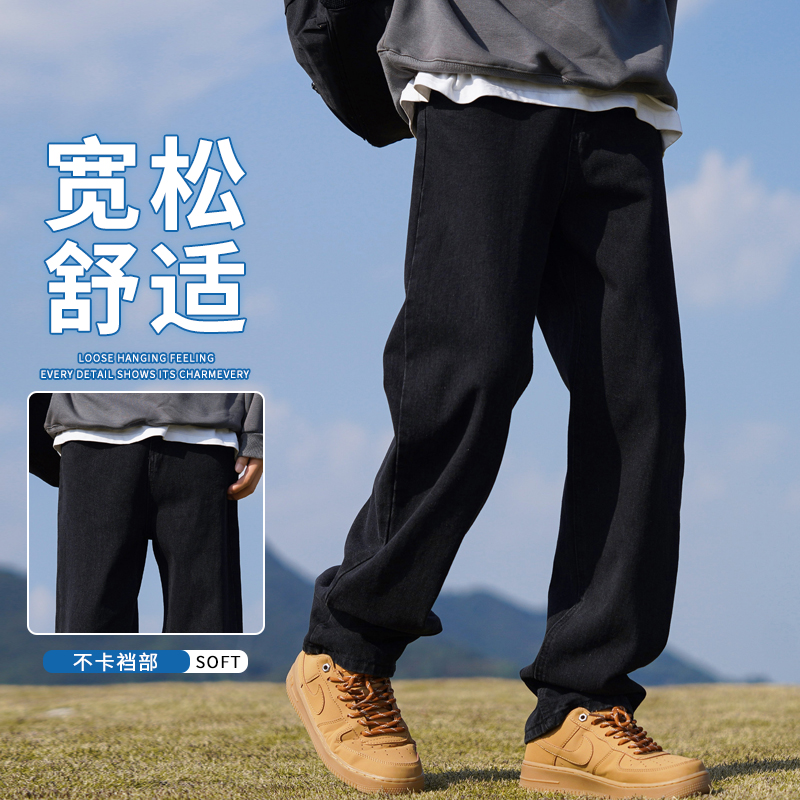 男士 白色直筒牛仔裤 宽松大码 裤 秋季 子高级设计感百搭休闲长裤 新款