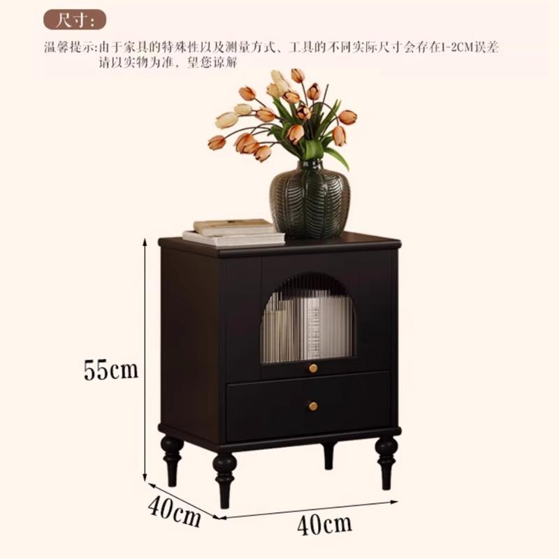 床边柜 中古风黑色收纳柜新款 法式 复古实木床头柜卧室小户型美式