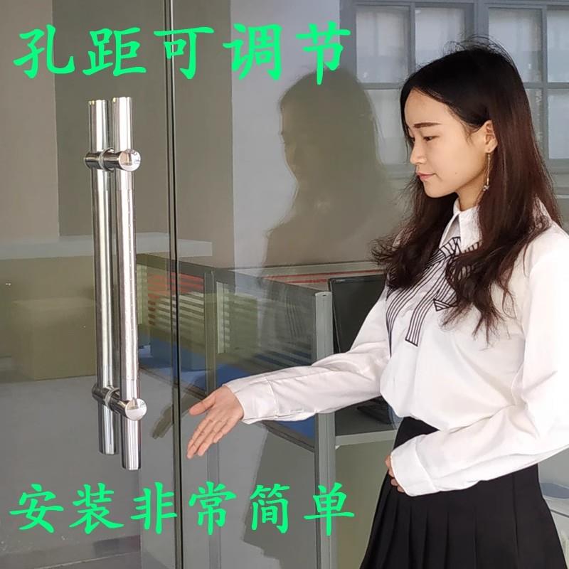 德国加厚不锈钢玻璃门拉手门把手对装 推拉办公室钢化大门孔距可调