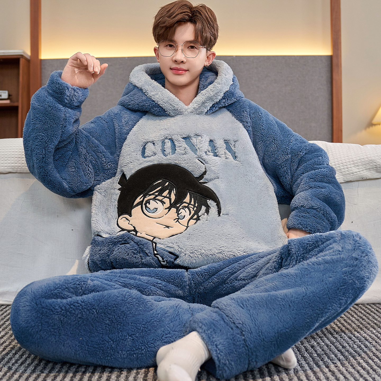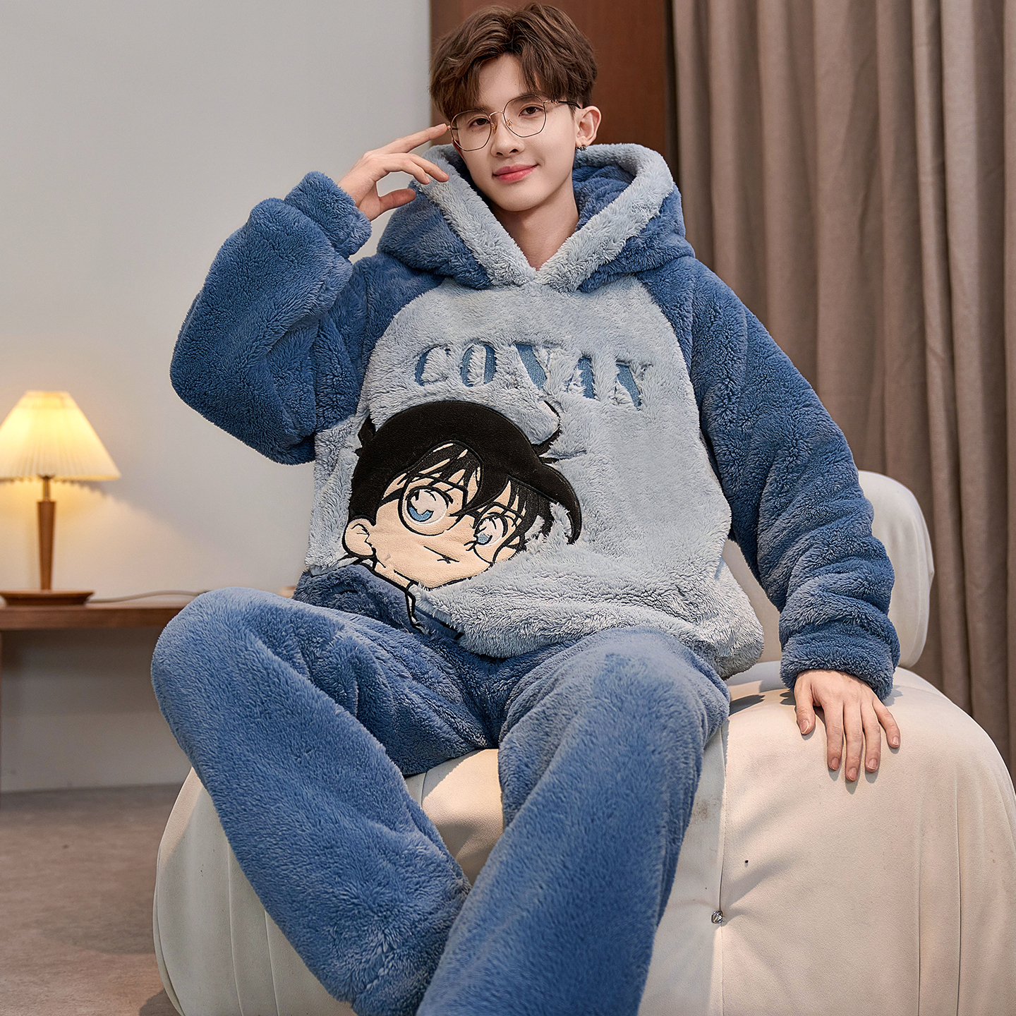 家居服套装 珊瑚绒睡衣男士 冬季 加绒加厚青少年学生大童大码 秋冬款