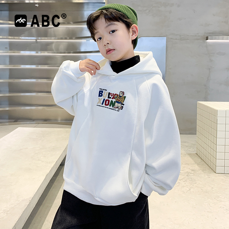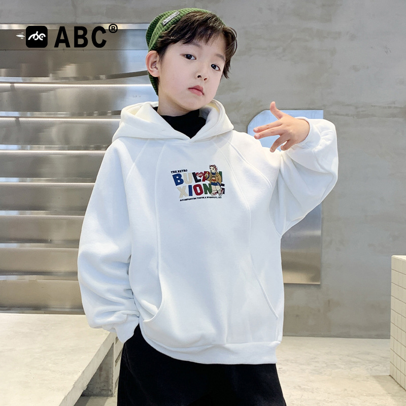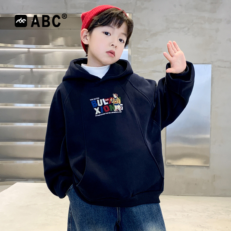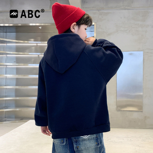 12岁男童上衣 ABC男孩秋冬加厚卫衣2025新款 中大童时髦印花绒衫