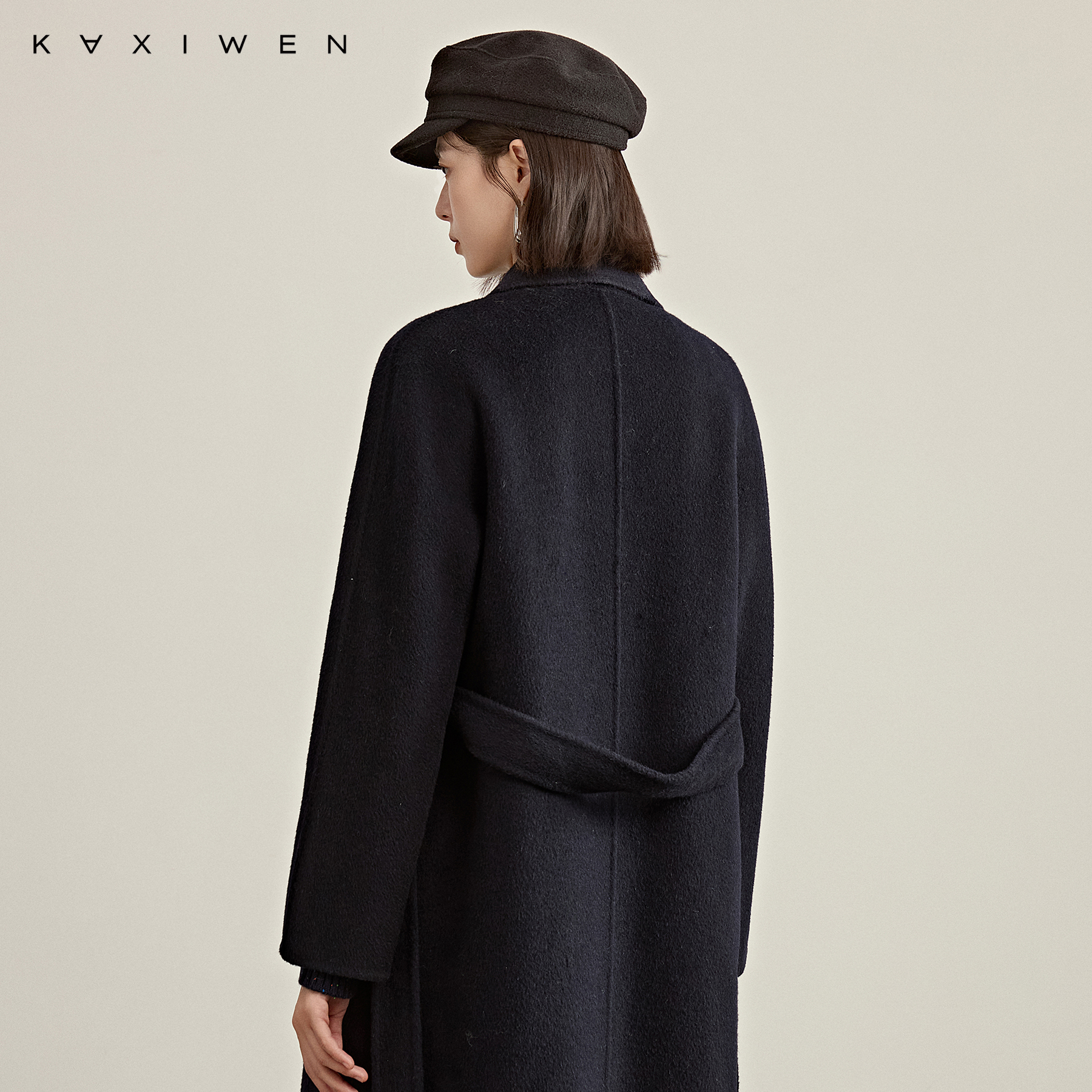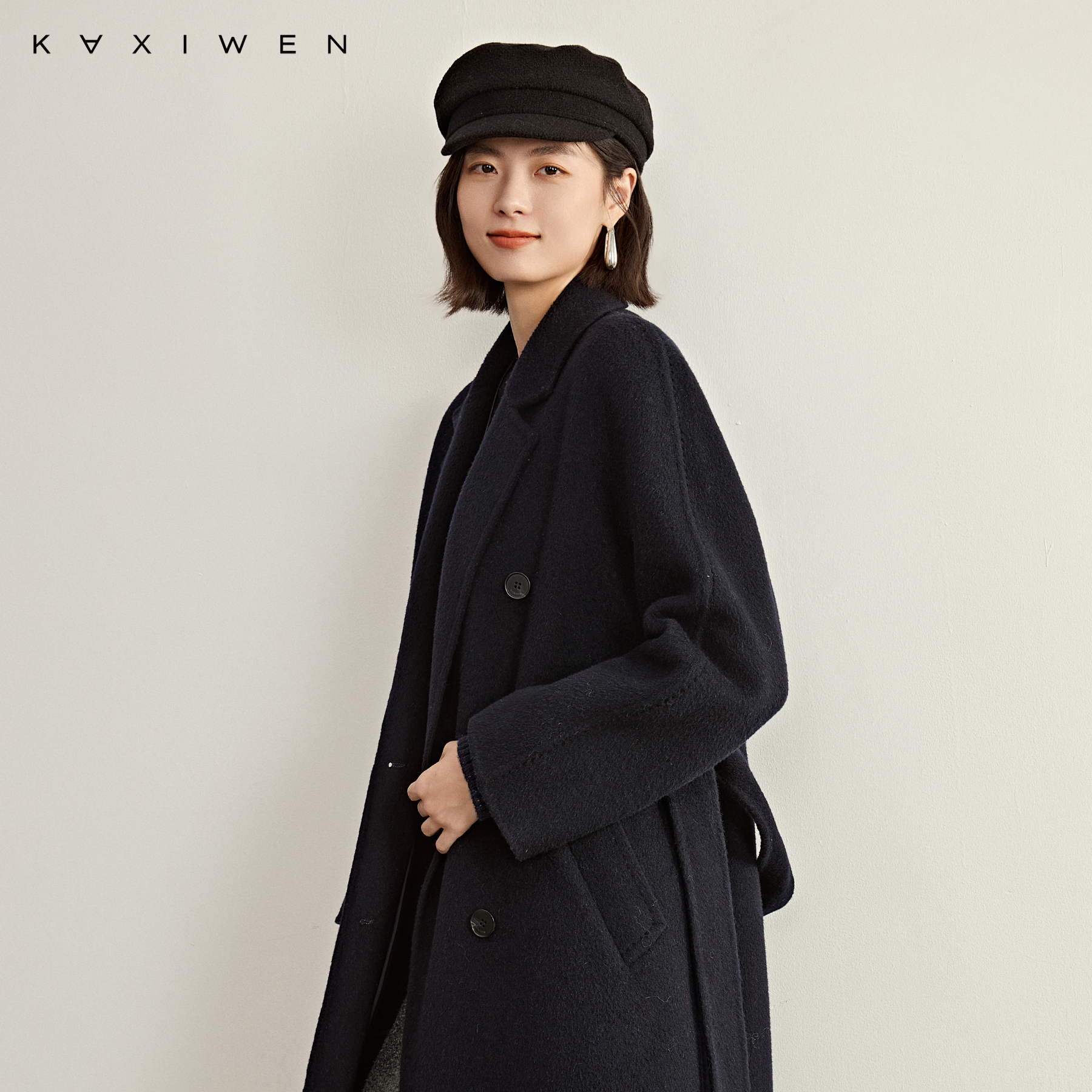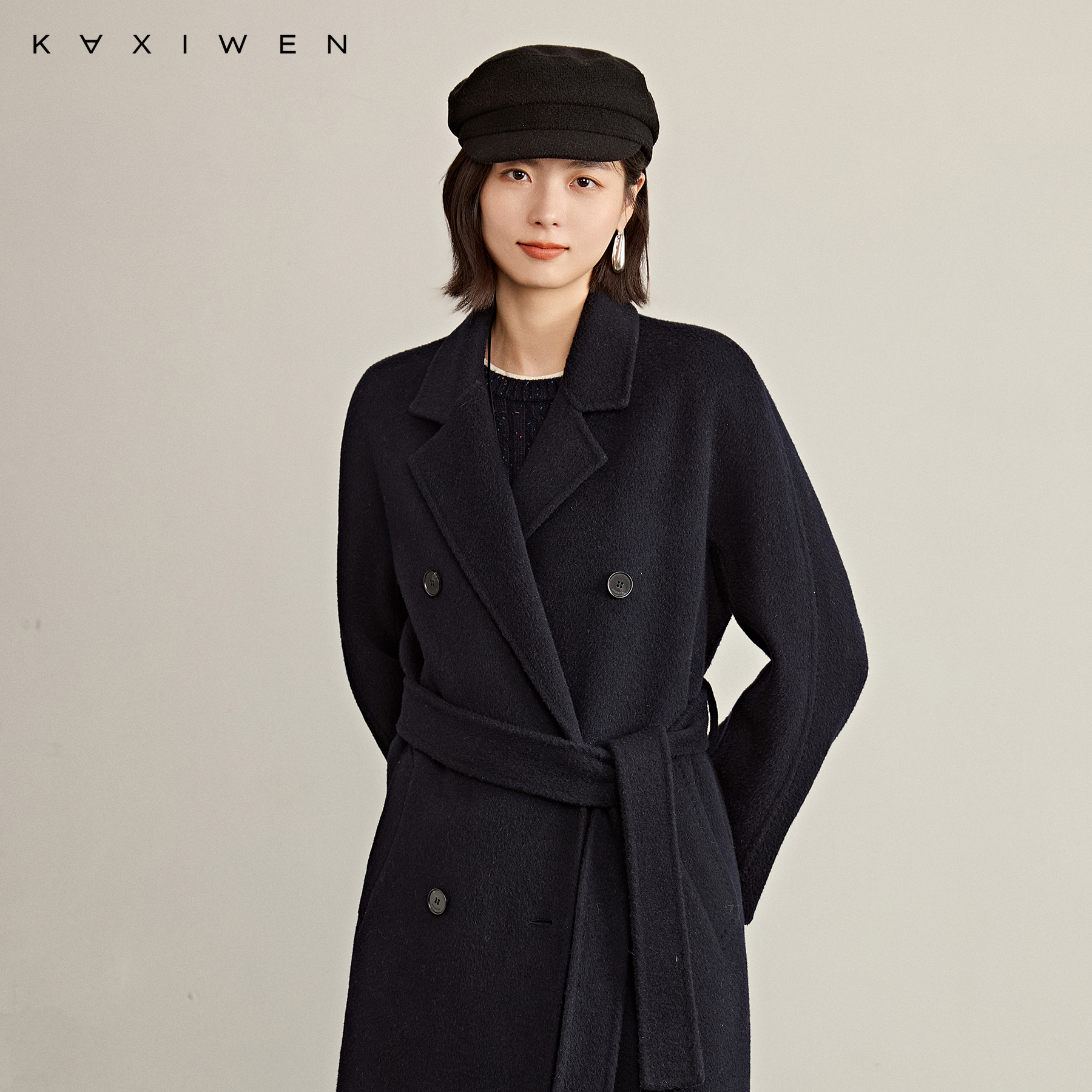 新款 双面毛呢大衣女2025冬季 秋水伊人黑色长款 外套 100%绵羊毛