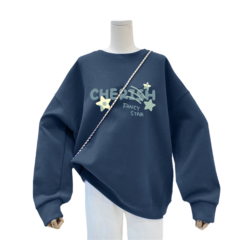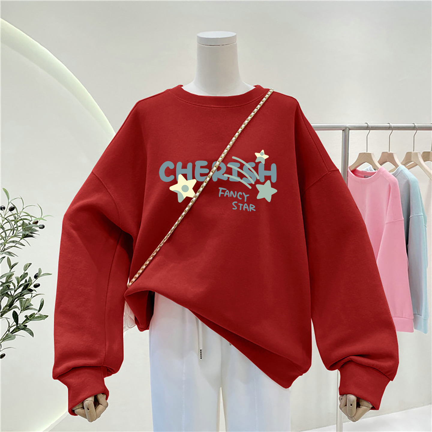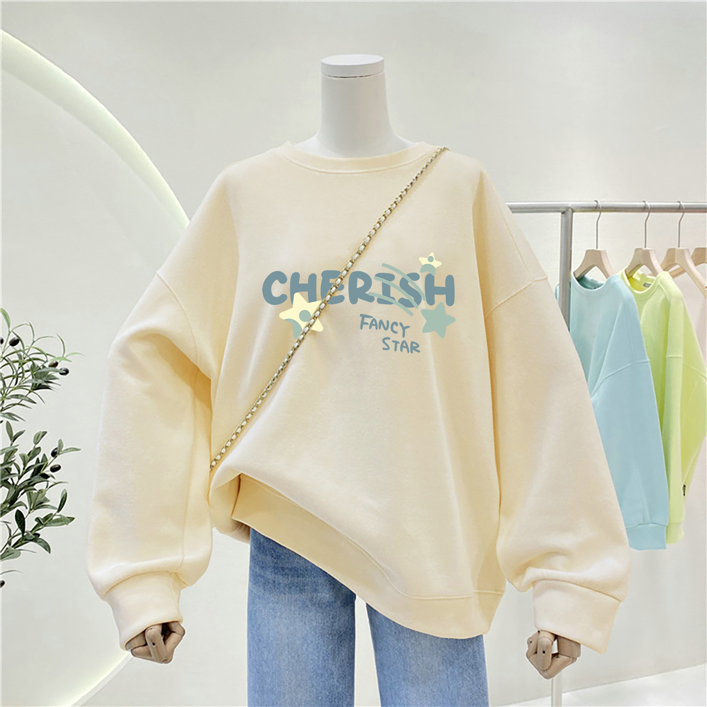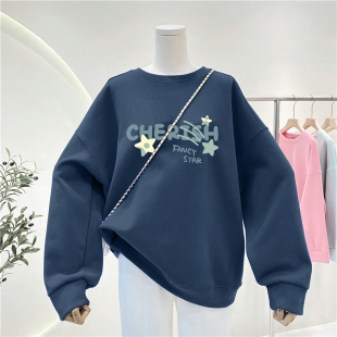 胖MM宽松百搭显瘦上衣服ins 大码 韩版 慵懒风字母印花圆领卫衣女款