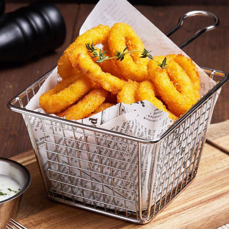 201不锈钢创意薯条篮装 炸鸡盘子网框正方形小拼餐饮拼盘网格篮子