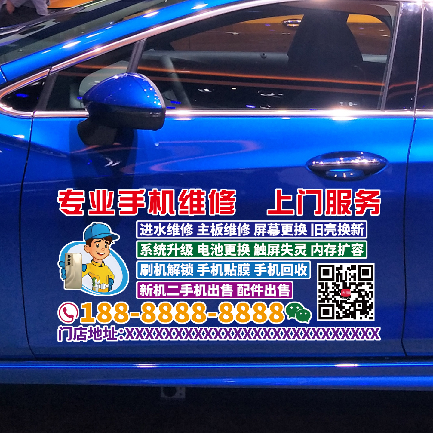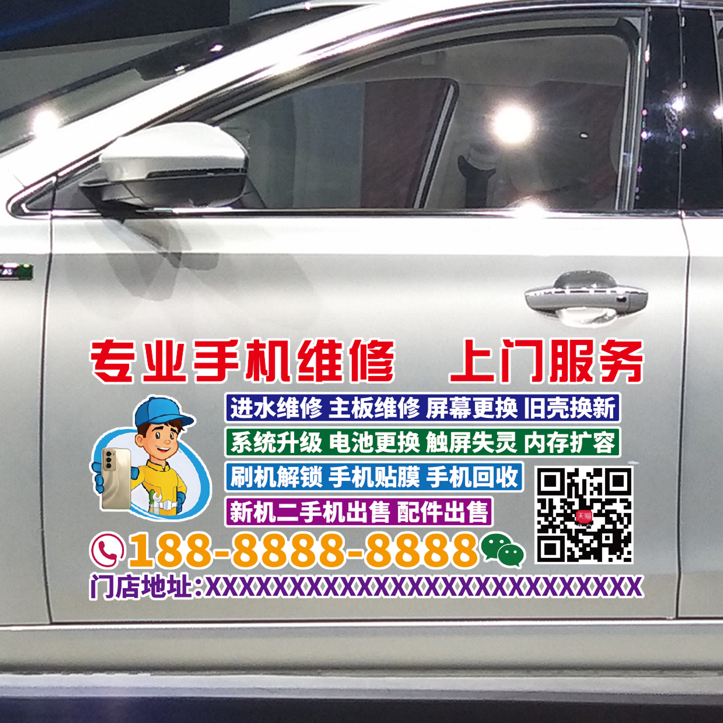 手机维修车贴 广告号码 电池更换 个性 定制贴纸 手机回收贴膜 魂速