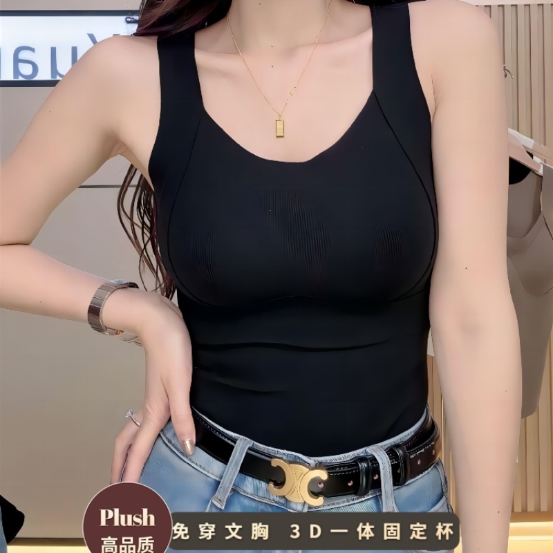 2025秋新款 工字外穿吊带背心女内搭带胸垫免文胸打底内衣夏上衣