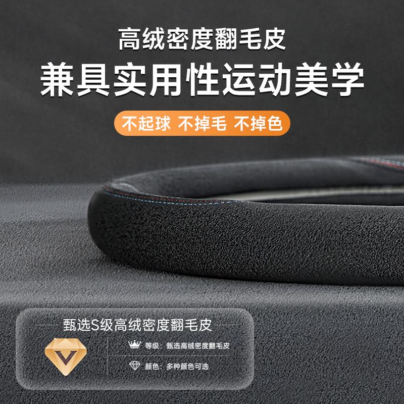 韩系汽车方向盘套冬季 通用防滑 毛绒保护套大众日产翻毛皮把套四季