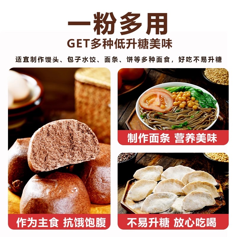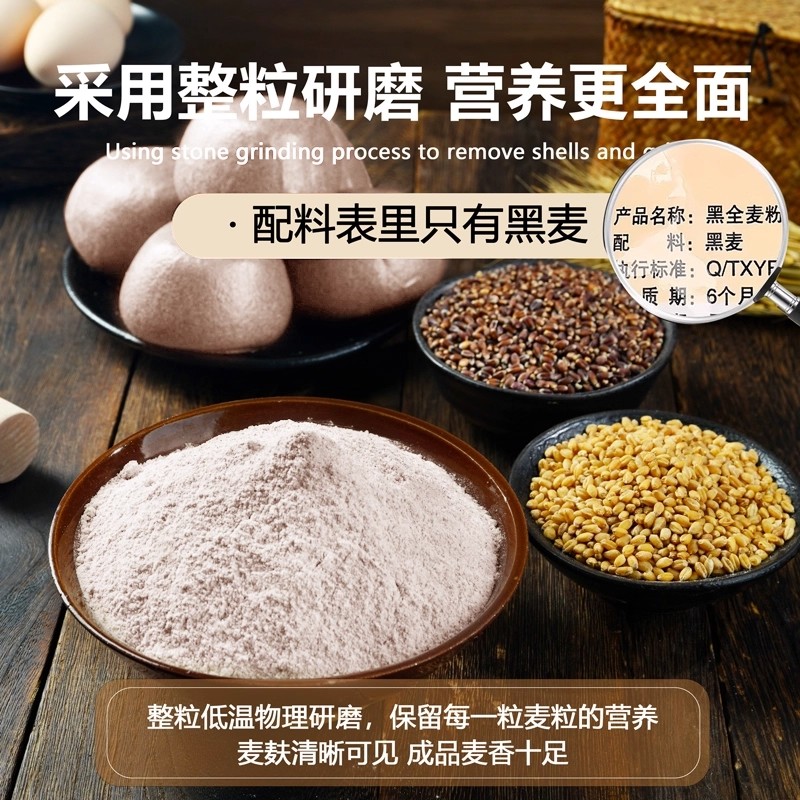 黑全麦面粉麦麸石磨黑麦粉纯黑小麦面包杂粮家用荞麦0无糖精低脂