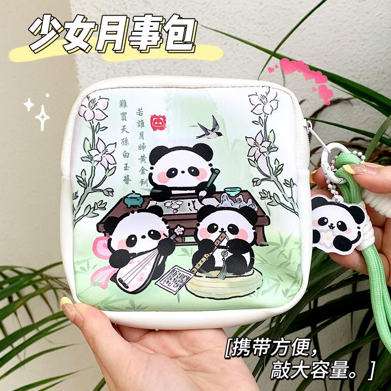 古风熊猫姨妈巾卫生巾收纳包学生防水大容量随身便携式 手提月事包