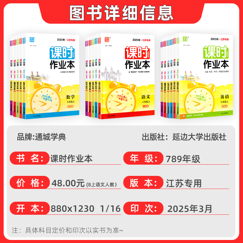 初一初二初三同步练习册 译林版 2026春初中亮点提优课时作业本七年级八九年级上册下册语文数学英语物理化学政治历史江苏版 人教版