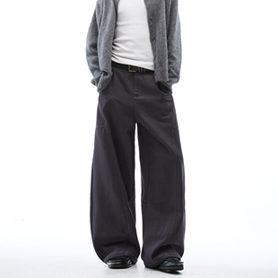 女春秋新款 休闲直筒慵懒松弛感裤 高腰垂感窄版 裤 子 西装 黑色阔腿裤