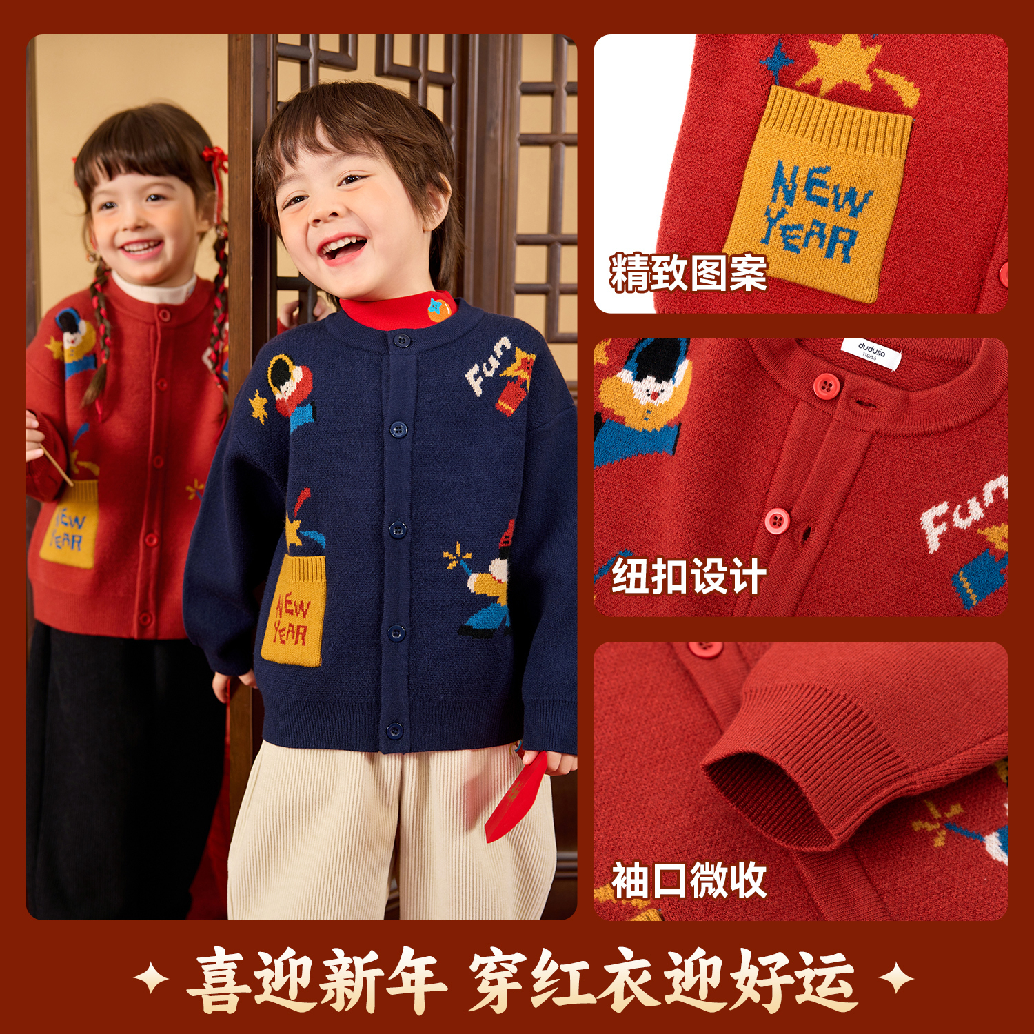 dudujia儿童拜年服宝宝新年毛衣男童童装 女宝上衣a类 女童衣服冬季