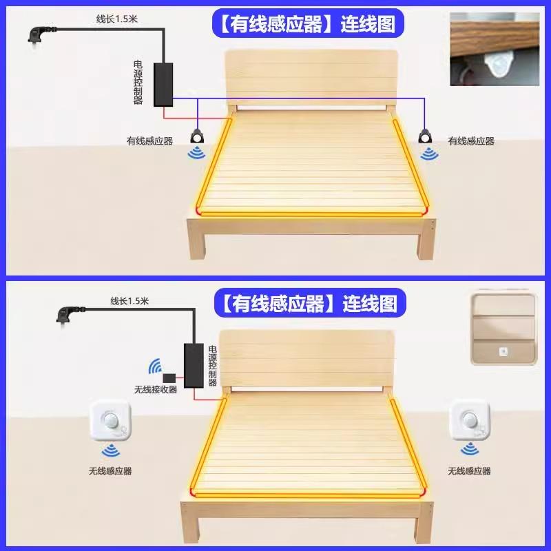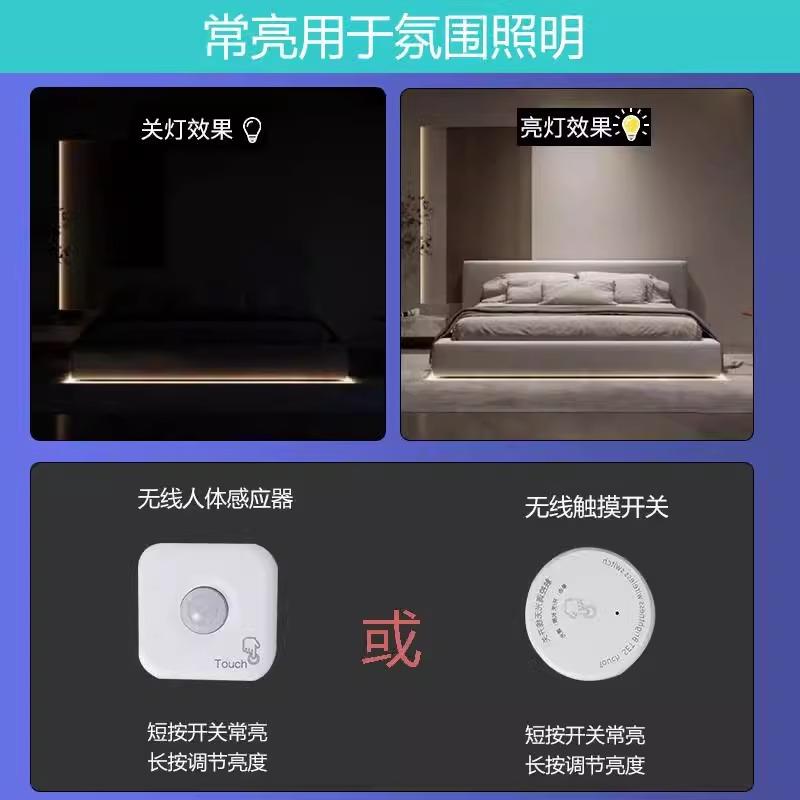智能悬浮床感应灯条卧室晚上起夜床底床边灯带自粘无线床下氛围灯