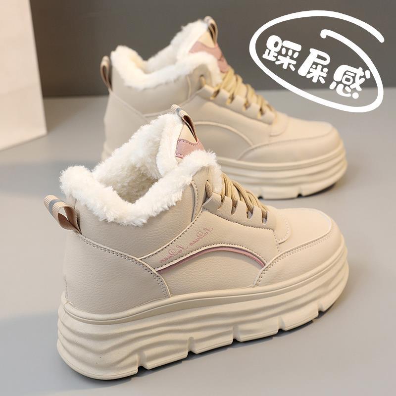 秋冬踩屎感高帮加绒小白鞋 厚底老爹1011h 女2025内增高运动休闲鞋