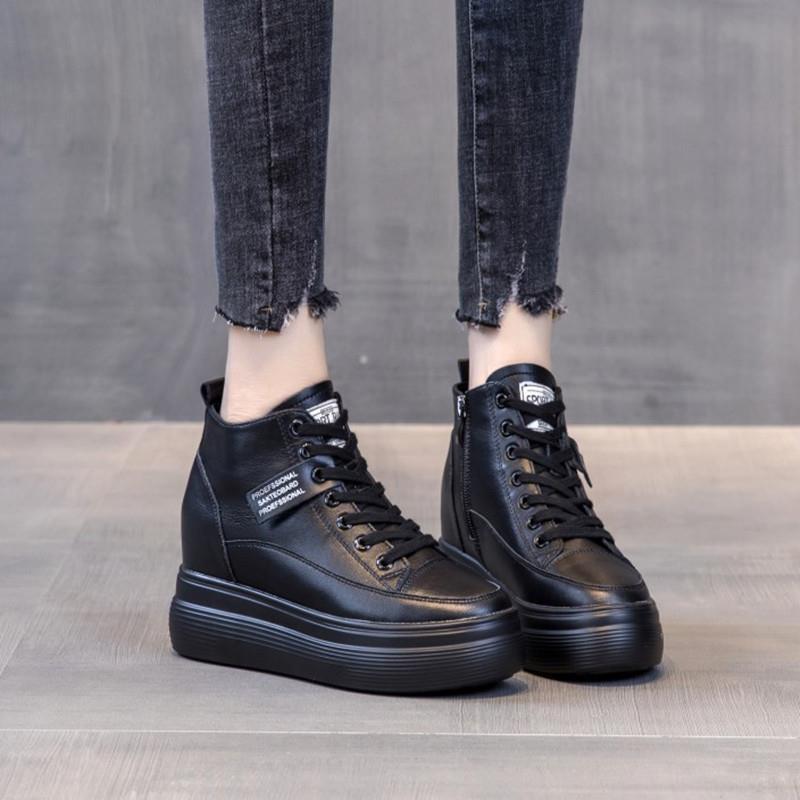 秋冬黑色高帮鞋 1010u 女2025秋内增高厚底增高cm高腰休闲运动鞋