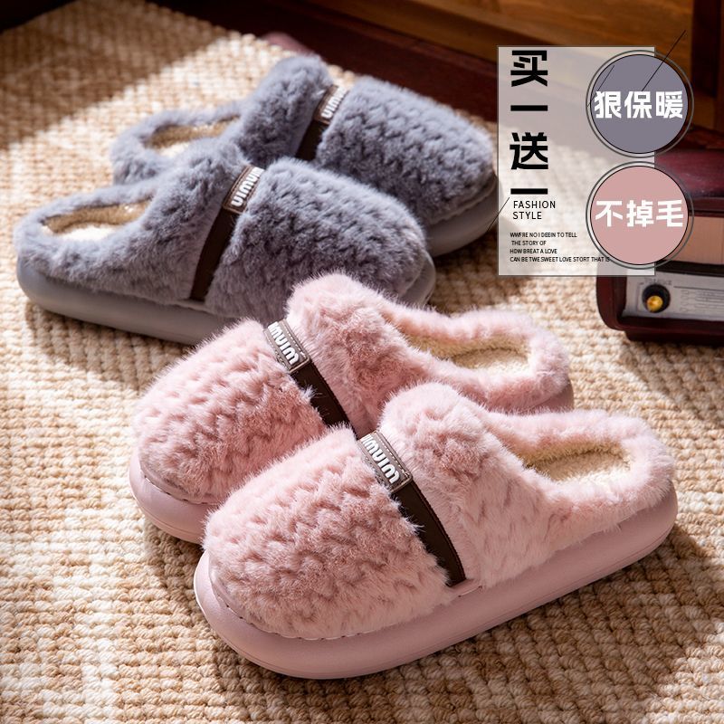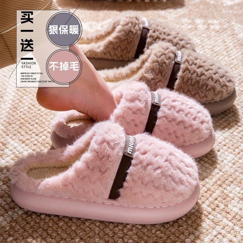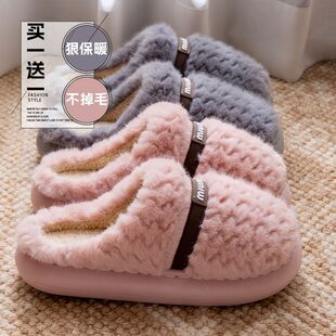买一送一踩屎感棉拖女冬季 情侣室内保暖家居防滑加绒棉拖 2025新款