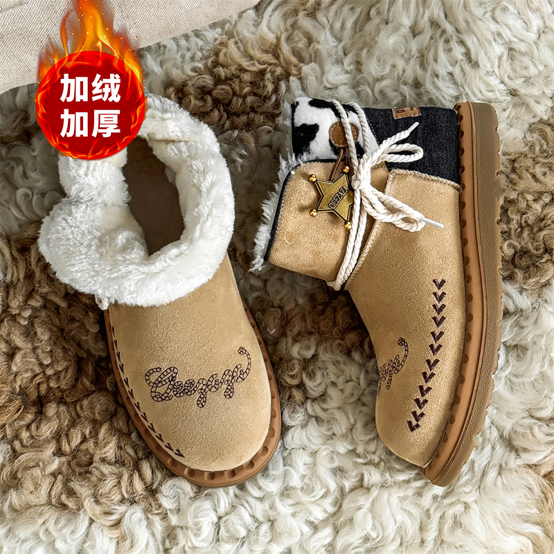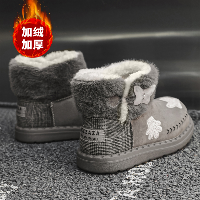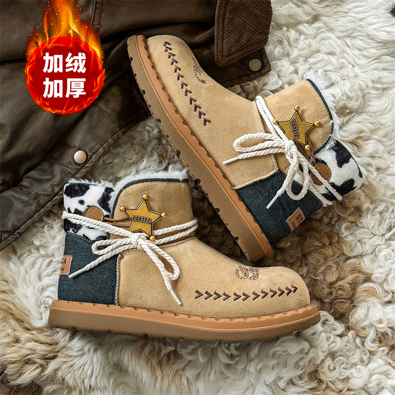 棉鞋 户外防寒皮毛一体短筒情侣款 加绒保暖 冬季 胡迪牛仔雪地靴男鞋