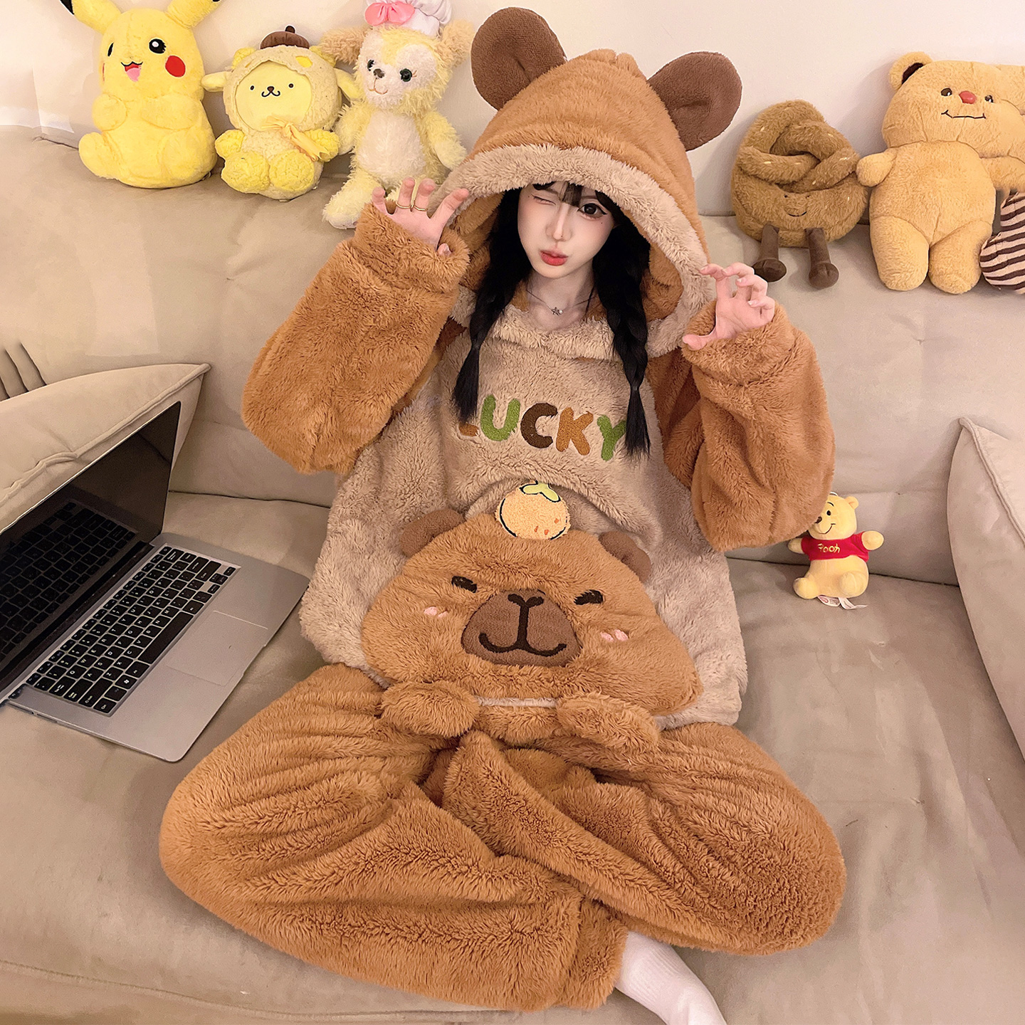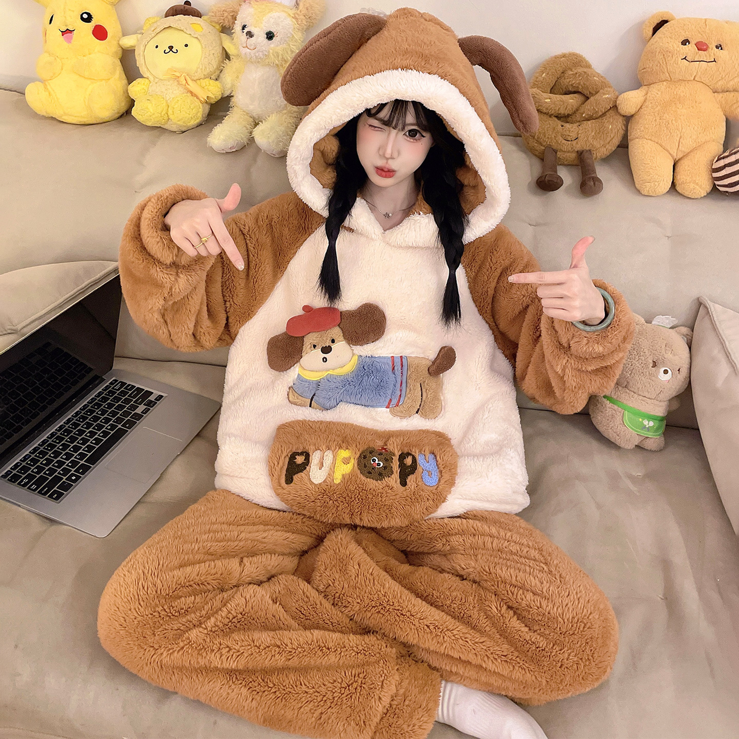 初中学生可爱法兰绒冬天家居服 加厚加绒珊瑚绒套装 睡衣女款 秋冬季