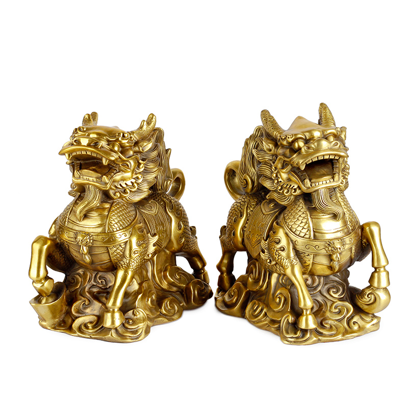 纯黄铜麒麟摆件麒麟一对火麒麟工艺品客厅铜麒麟摆件家居饰品礼品