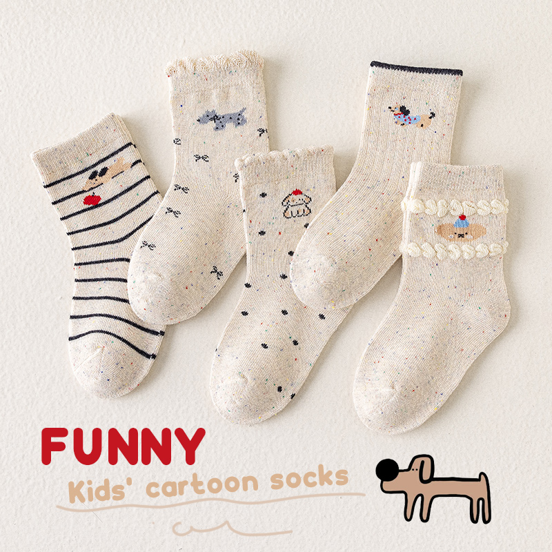 儿童袜子女秋冬纯棉无骨卡通中筒袜点子纱女孩少女学生袜百搭潮袜