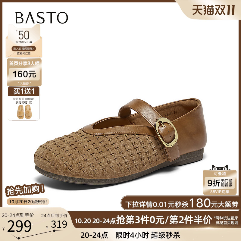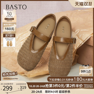真皮浅口单鞋 新款 子E1T1DCQ5预 女2025秋季 百丽复古粗高跟玛丽珍鞋