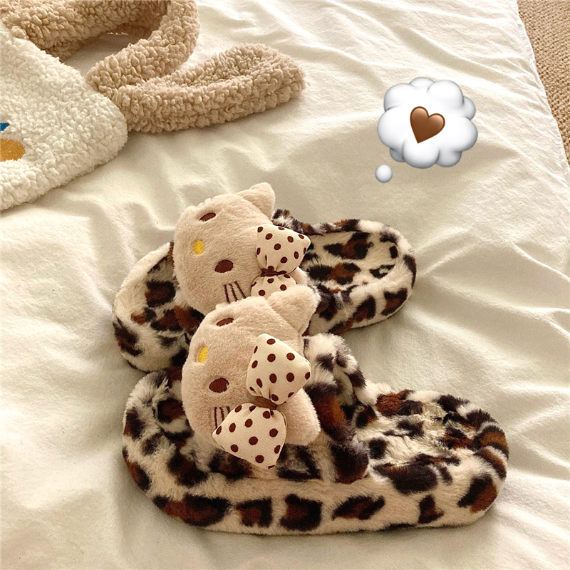 可爱毛毛加绒月子棉鞋 包跟2025新款 女 女士冬季 HelloKitty猫棉拖鞋