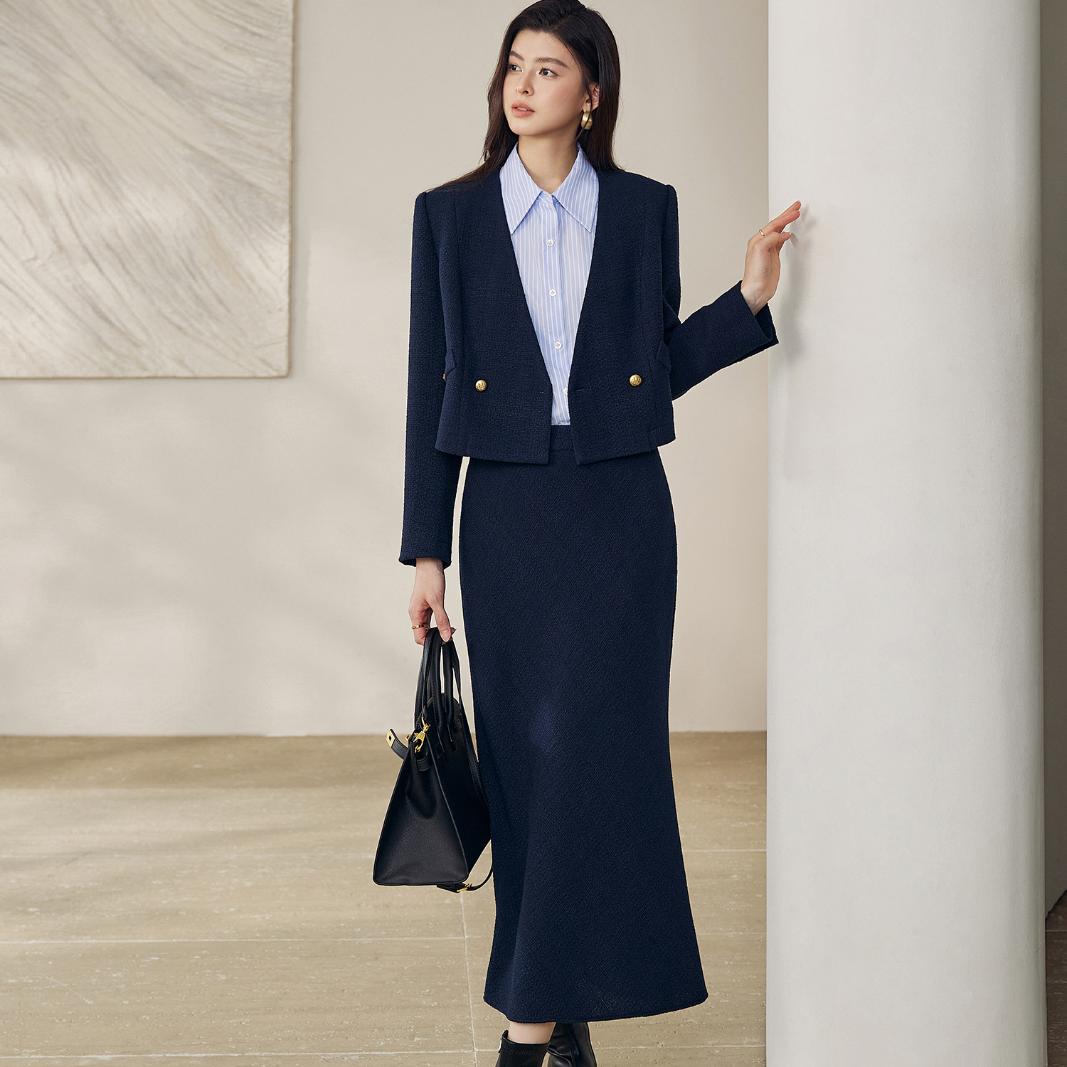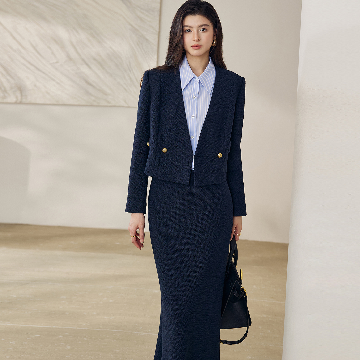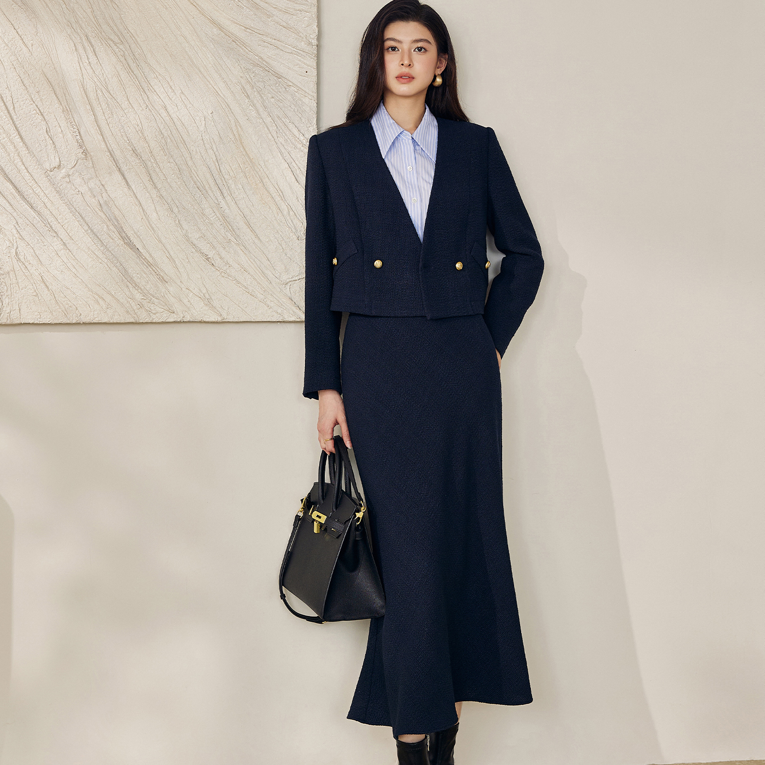 半身裙两件套显瘦显高女人味13103 短外套 罗衣知性修身 粗花呢套装