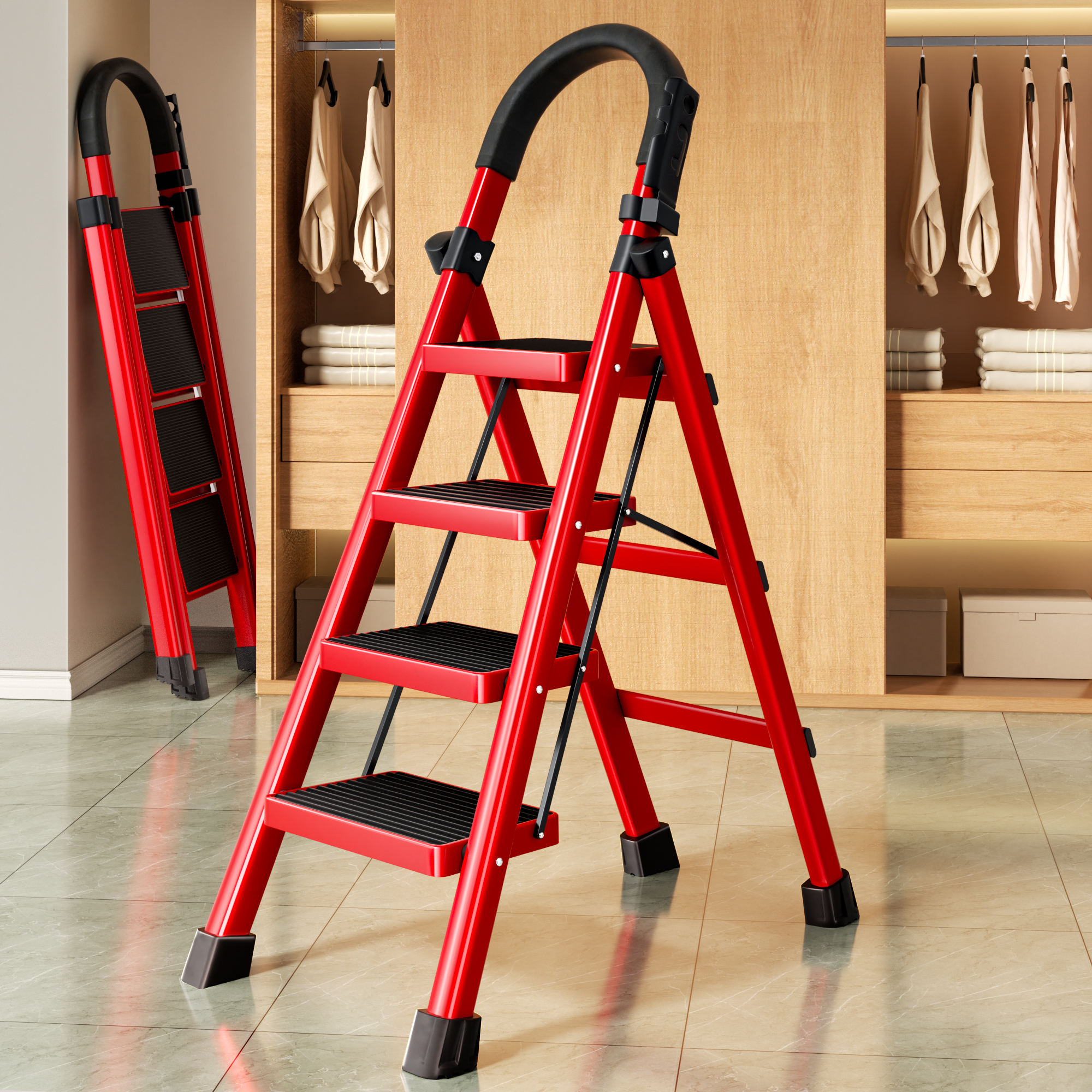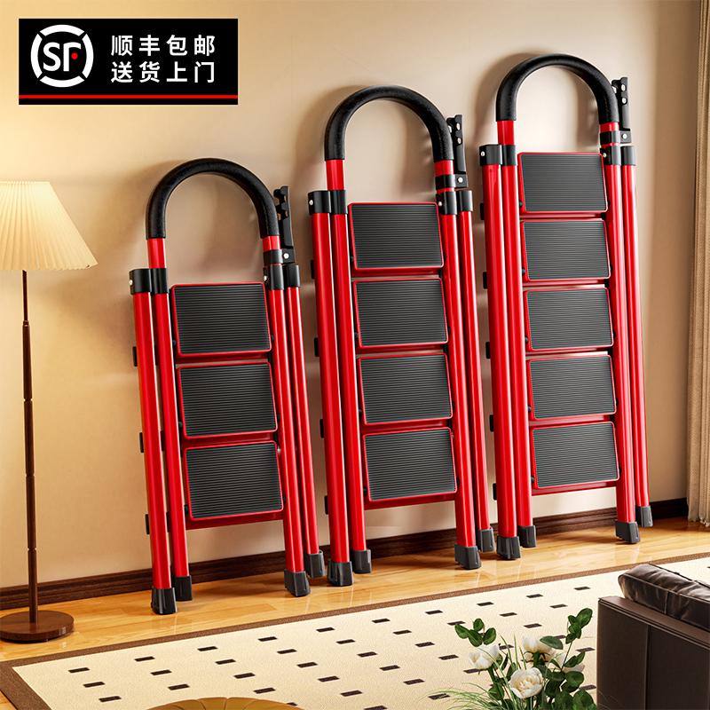 日本家用梯子折叠多功能加厚人字梯红色小型乔迁之喜四步楼梯扶梯